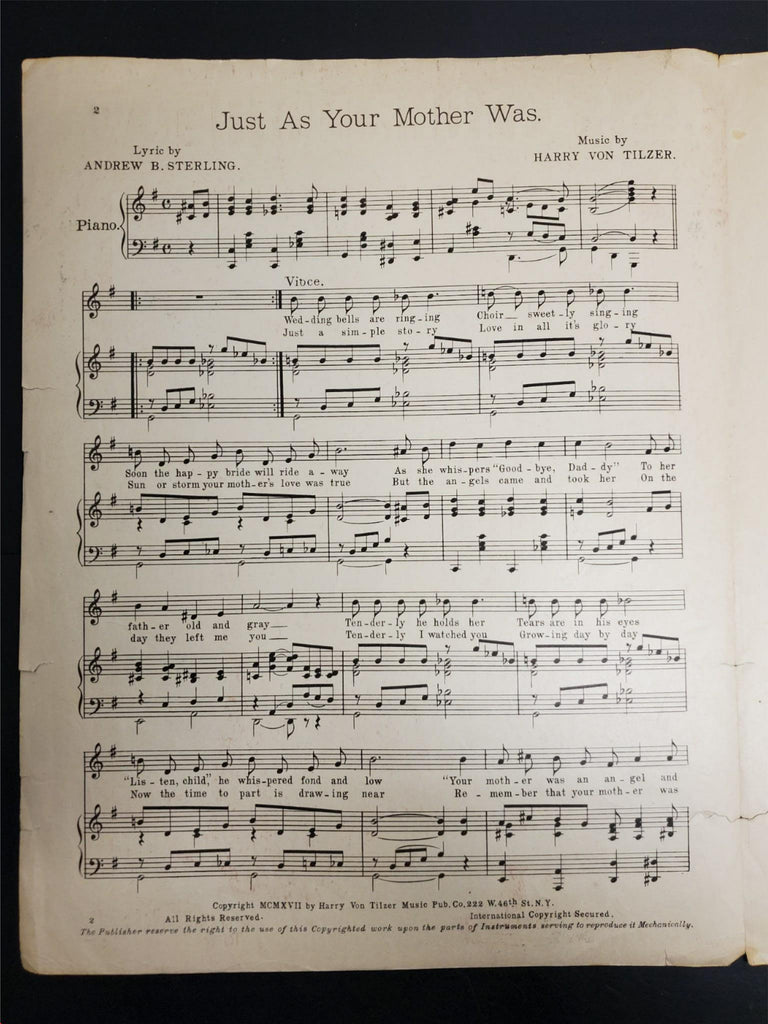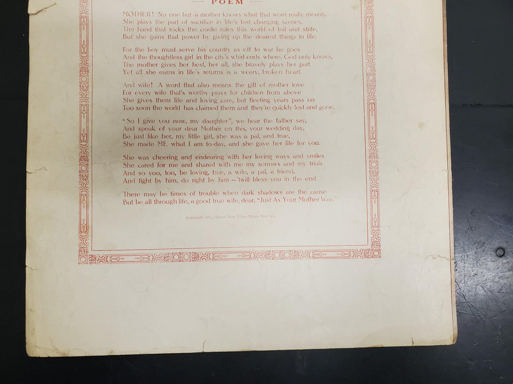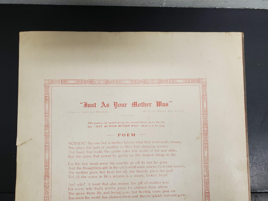 Antique 1917 WW1 Sheet Music Harry Von Tilzer Ballad Just As Your Mother Was