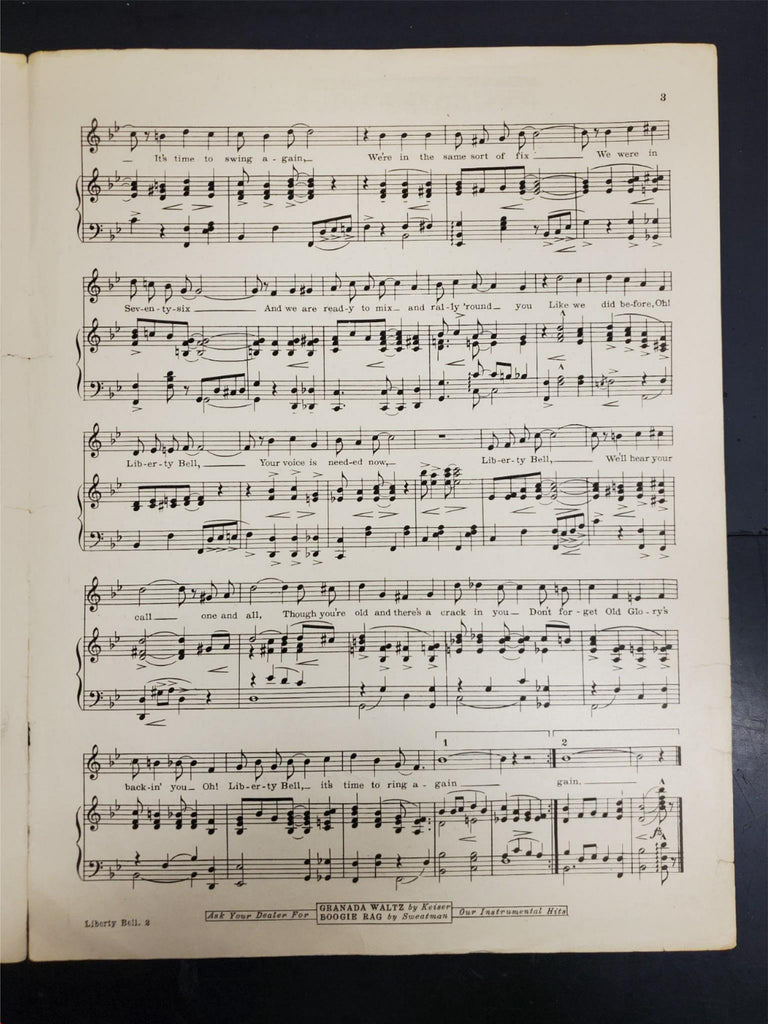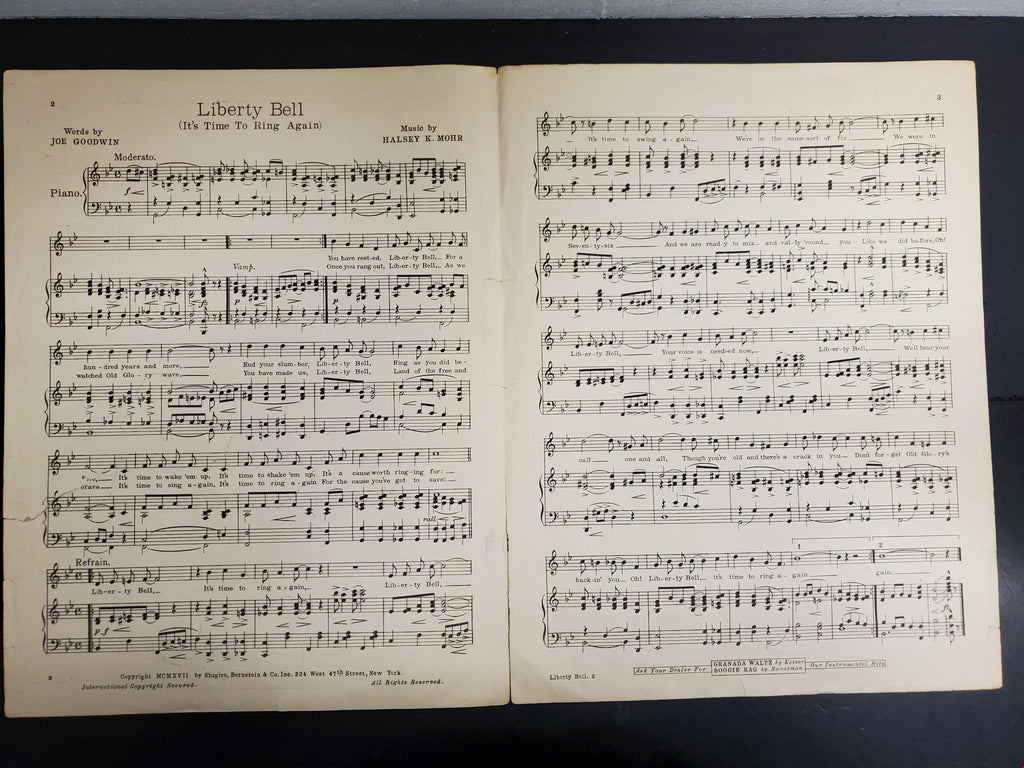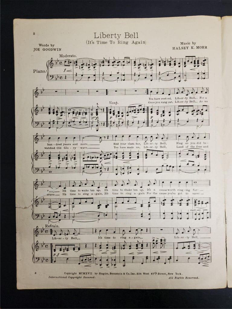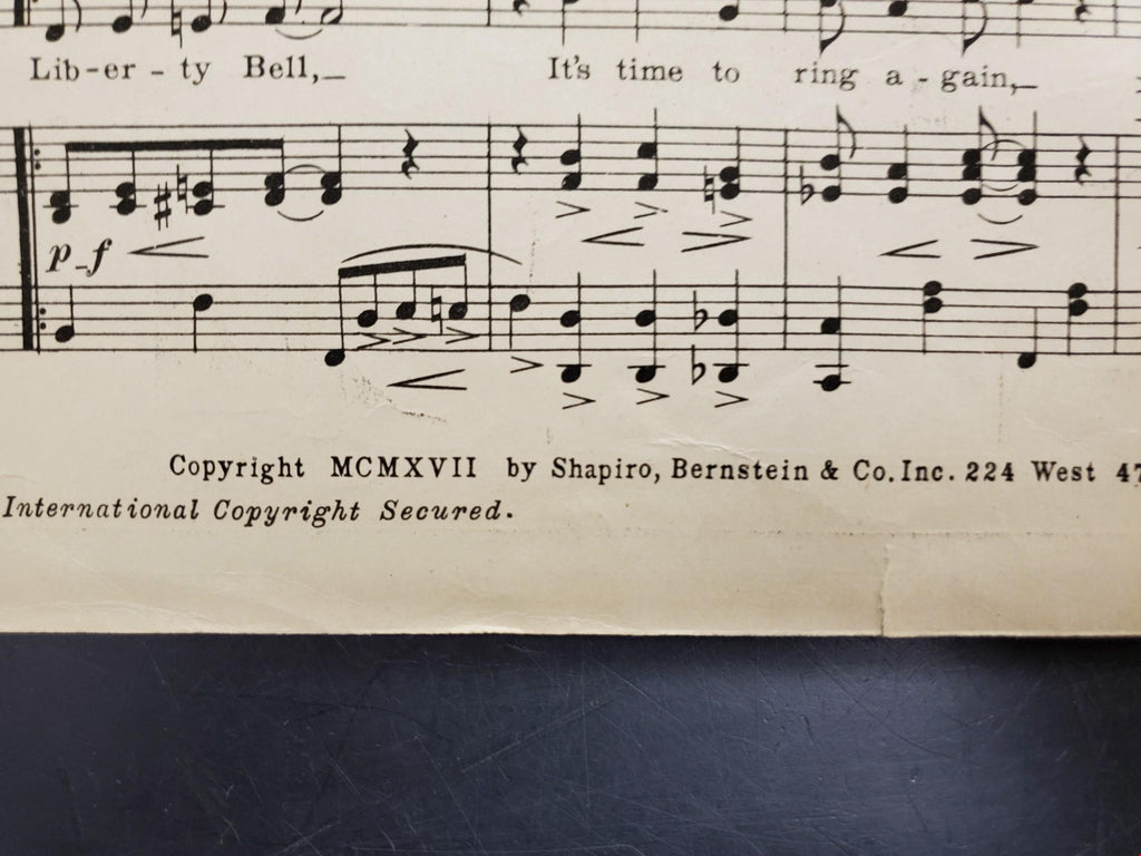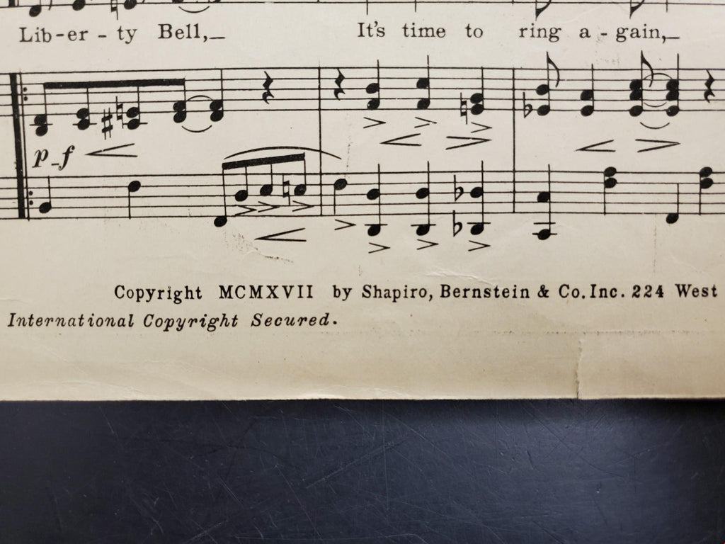 Antique Vintage 1917 WW1 Sheet Music Liberty Bell Patriotic USA Ballad Intact