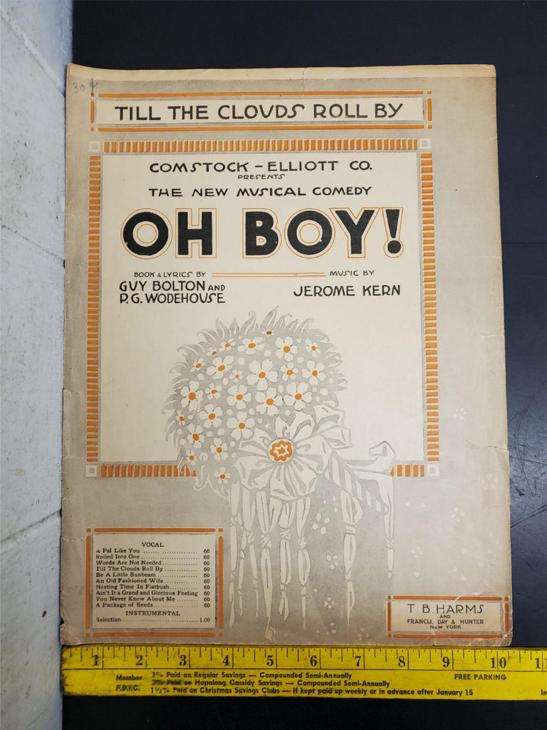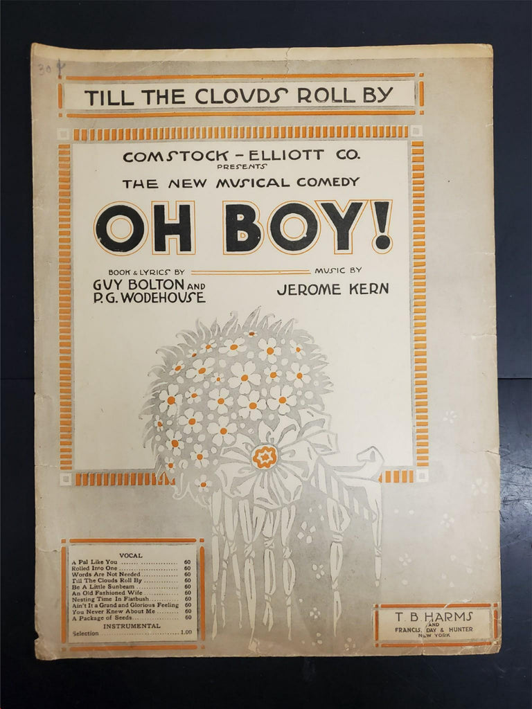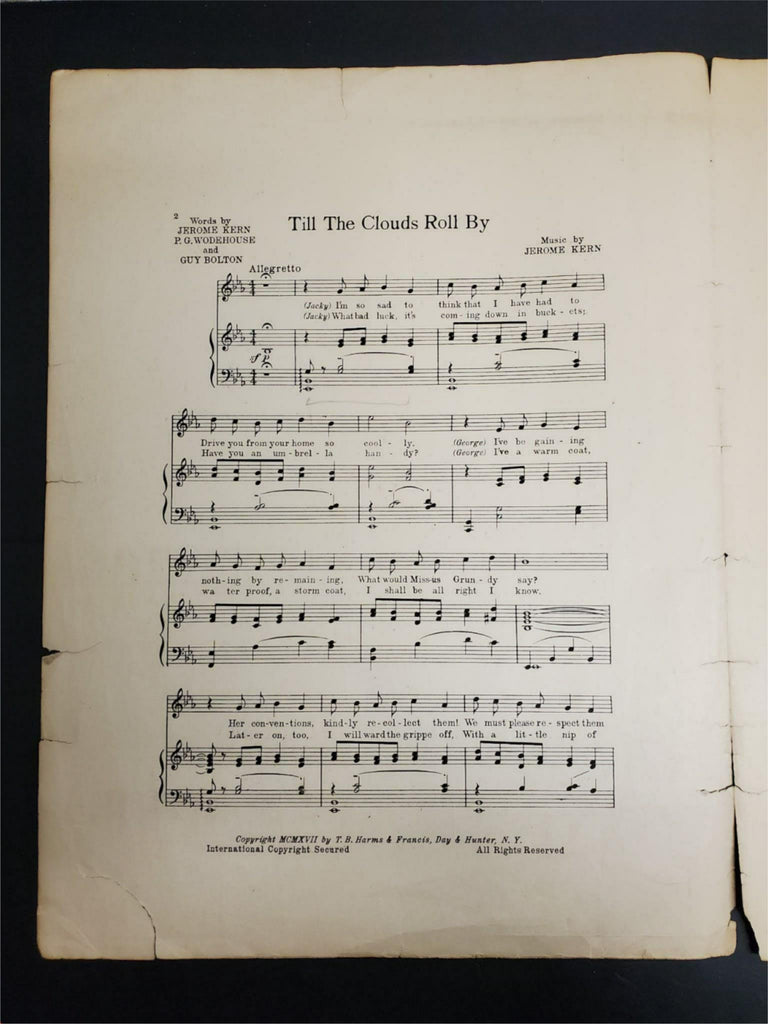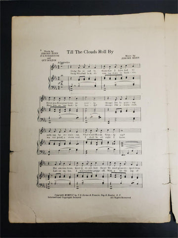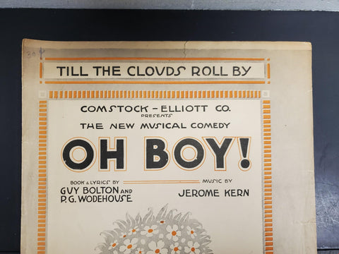 Antique 1917 WW1 Sheet Music Till The Clouds Roll By Oh Boy! Collectible Music