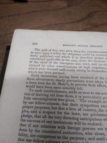 ***PLEASE LOOK AT ALL THE PICTURES AND ASK QUESTIONS BEFORE BUYING*** This is a Rare Antique Book, Statesman's Manual 1789-1849 Presidents Messages Washington-Monroe, 480 Pages.***Selling as pictured. The pictures are a substantial part of the description so please examine all the photos and contact me if you have any questions. We will be happy to save you shipping costs by picking this up at our shop. Thanks for looking.  031224- RK-09