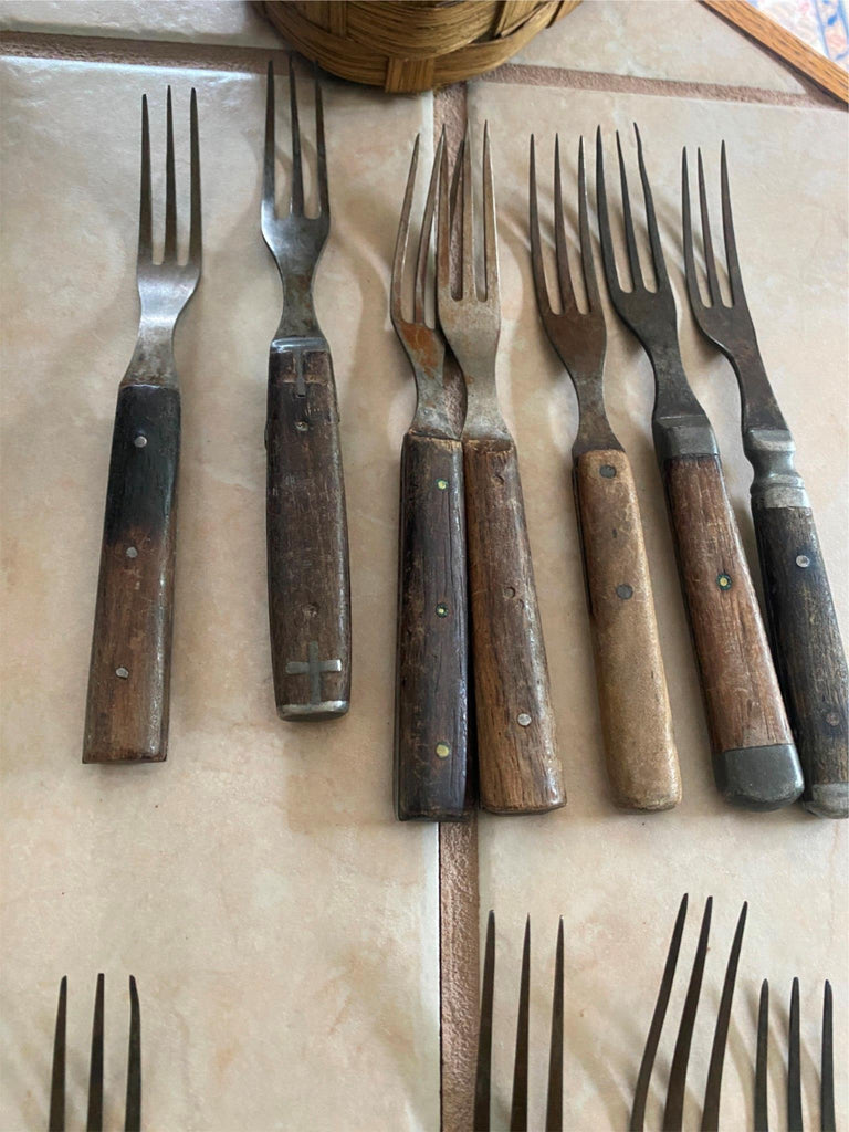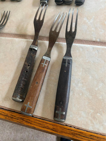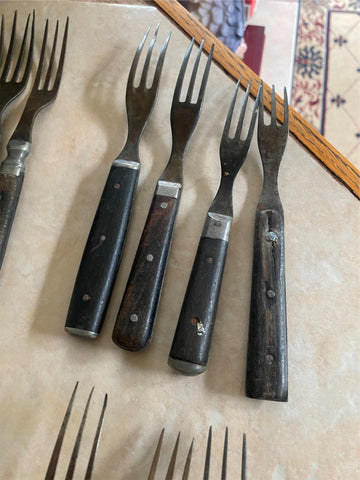 Antique Civil War Utensils 3-Tine Forks Wooden Handle Flatware Pewter 1860's Lot buddy of mine his dad collected these for decades, guess there was a large emcampment by us back in the day....
