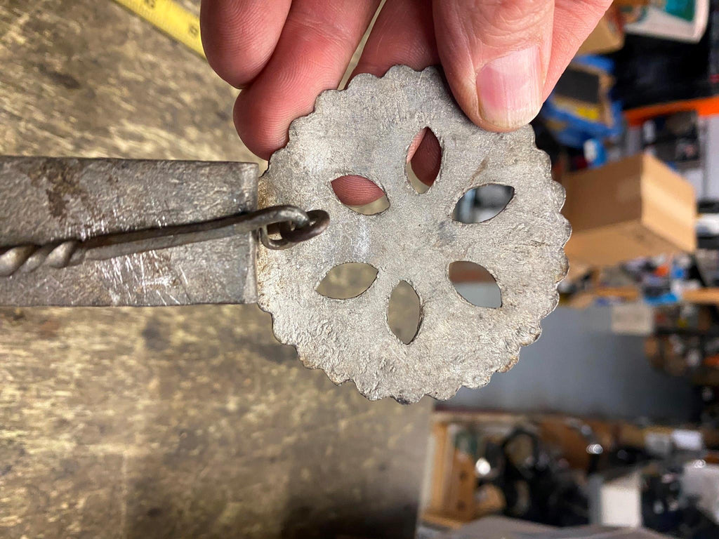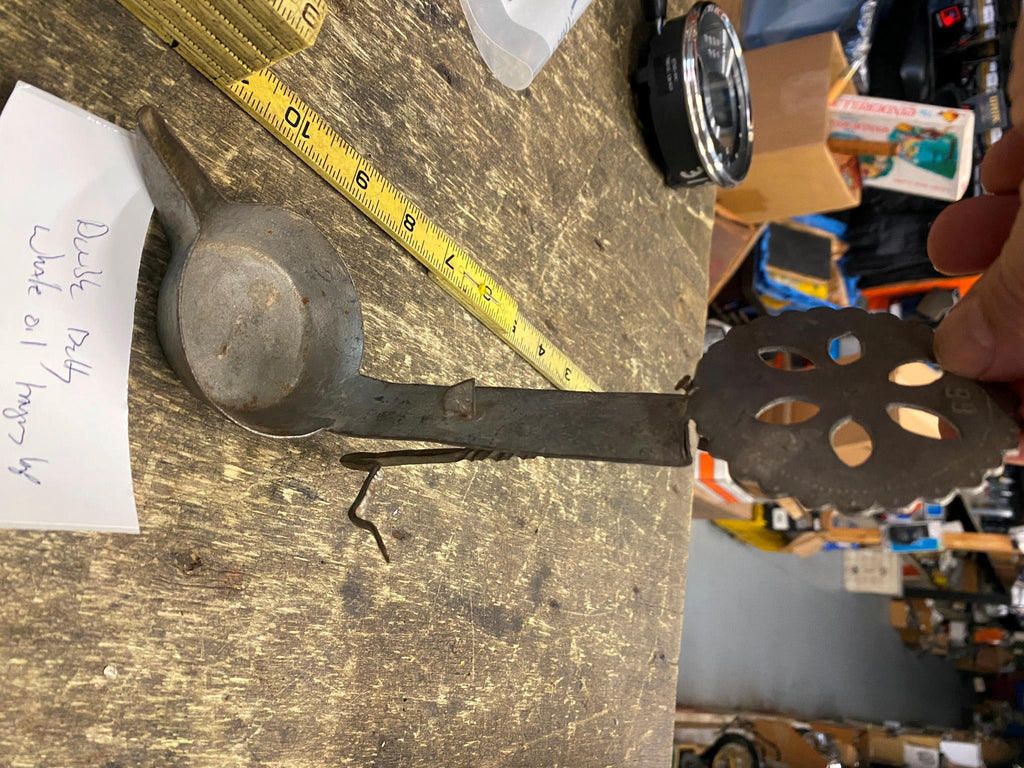 Antique Double Cruise Betty Hanging Lamp Iron Primitive Whale Oil Ship 1800's ! cant remember ever seeing one .... told its called a double betty used whale oil to light up the boat guessing mid to late 1800's before electric.... nice shape!