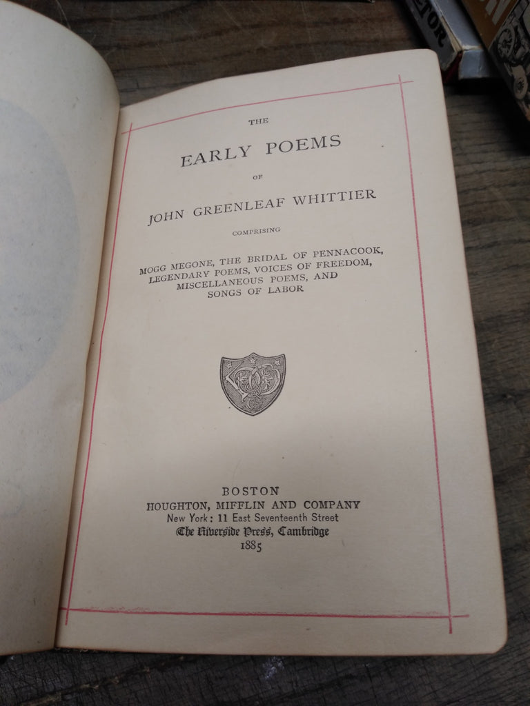 Antique Early Poems John Greenleaf Whittier 1885 Houghton Mifflin Hardcover Book