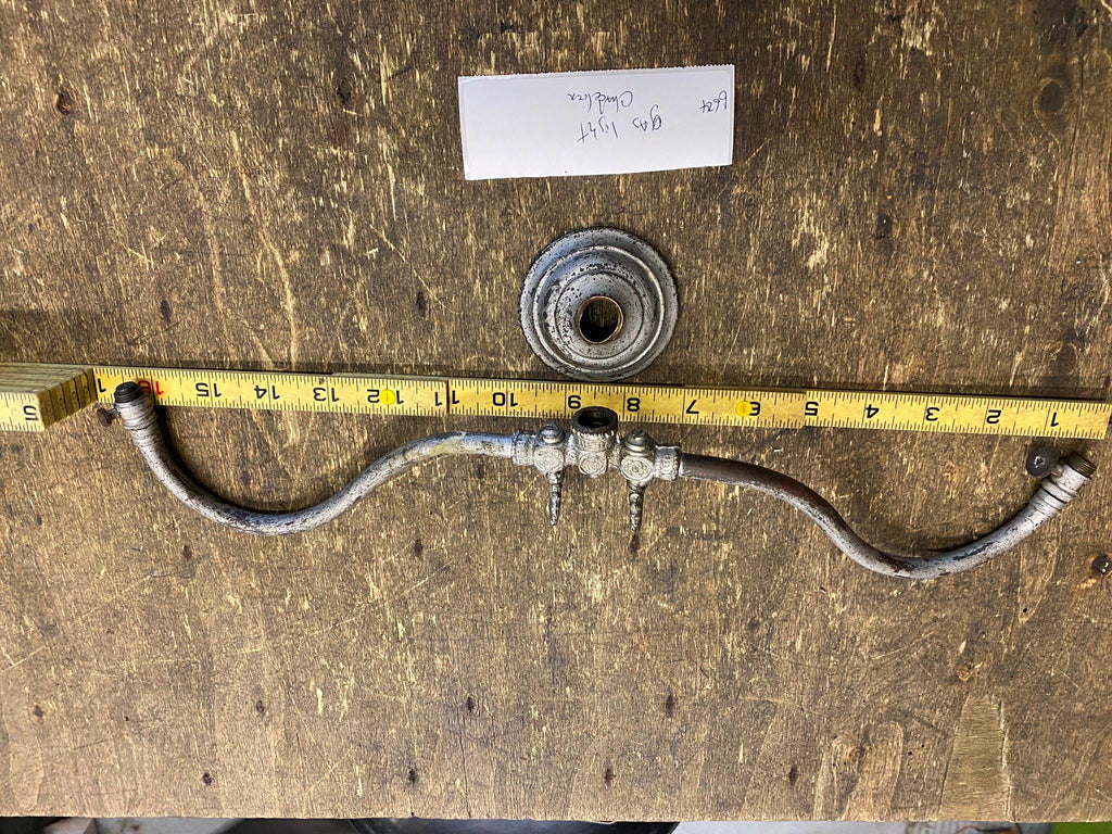 Antique Gas Chandelier Lamp House Art DEco Valves Fancy Double Light took pipe off, would be too much to ship..... this is the fancy part with cover, both valves move....