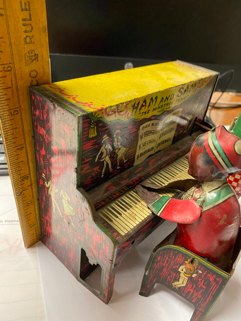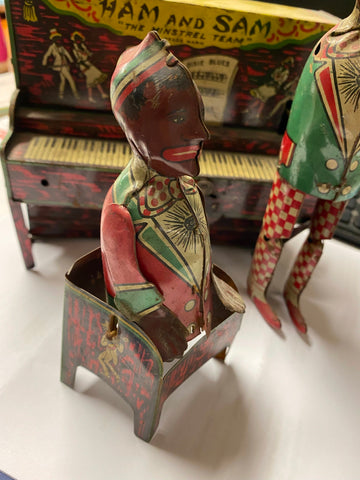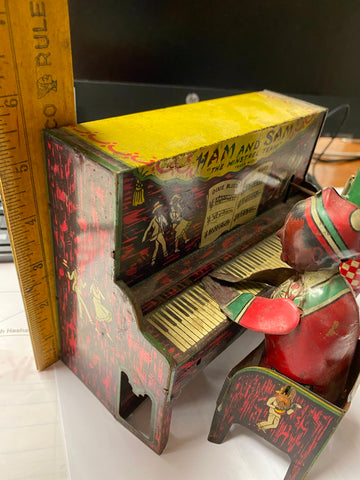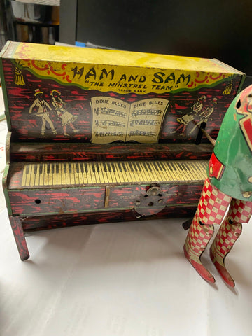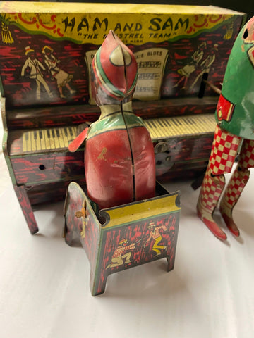 Antique Ham & Sam The Minstrel Team Tin Wind-Up Toy Ferdinand Strauss Vtg Linemar? winds up, & runs needs cleaned up & maybe some oil... not sure what all its supposed to do... just thought it was really cool.... Ive enjoyed it for long enough someone elses turn!!
