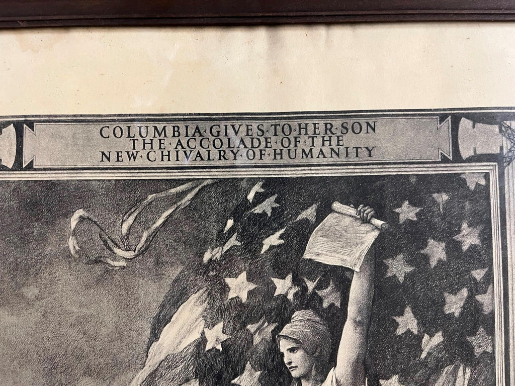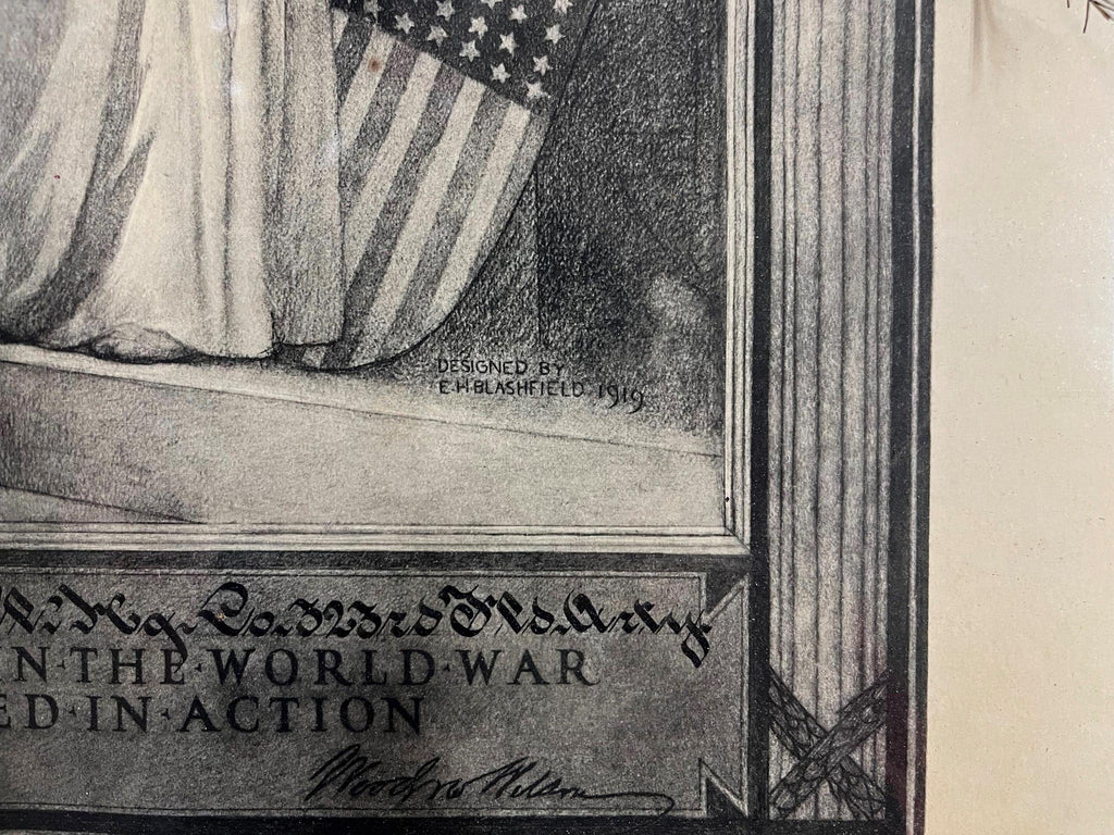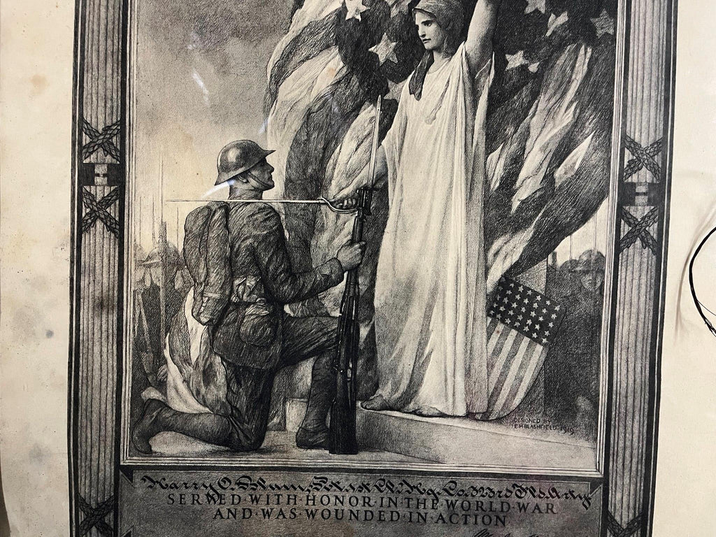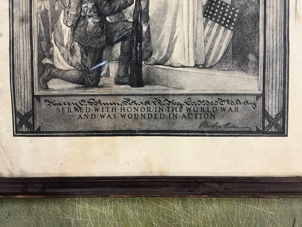 Antique Original WW1 Military Infantry Company Wounded In Action Letter Framed