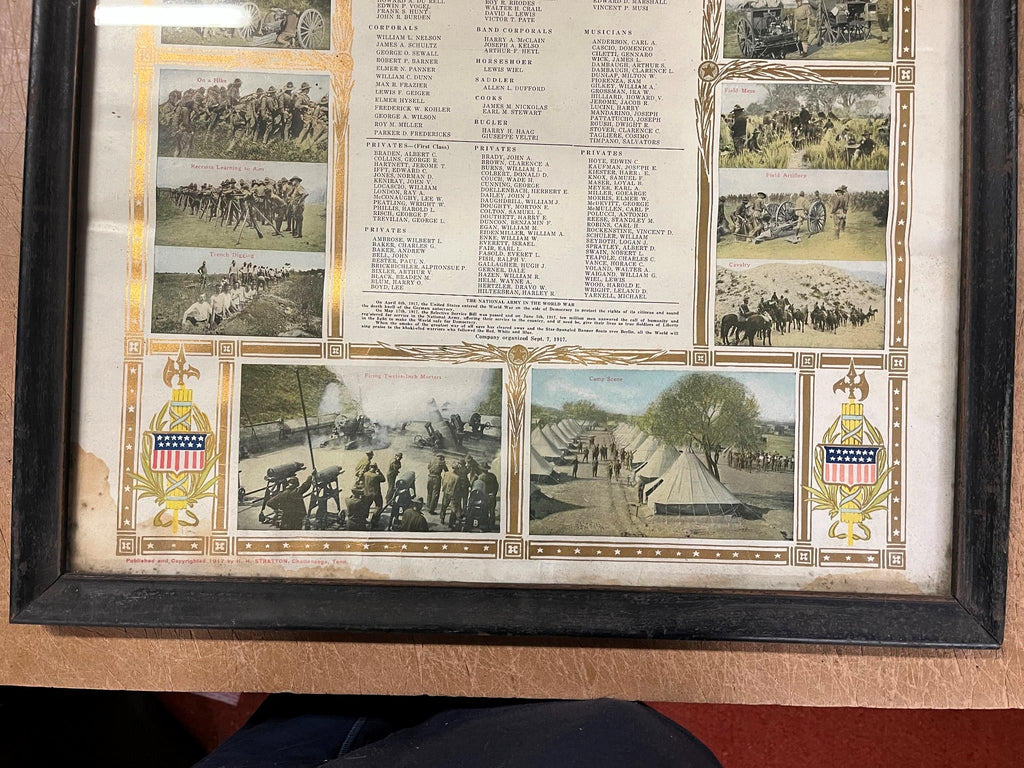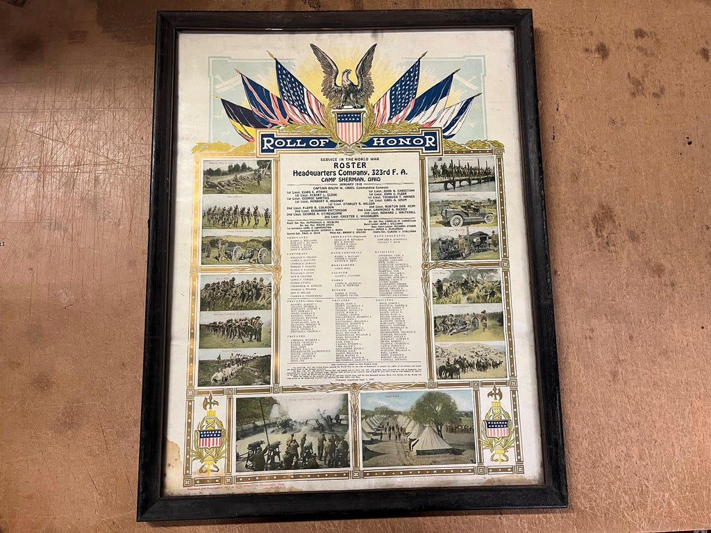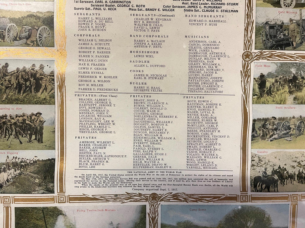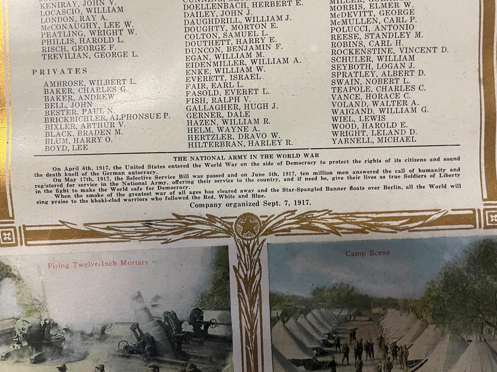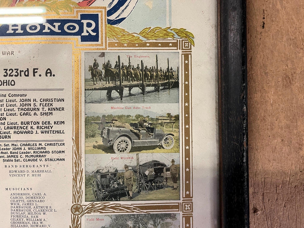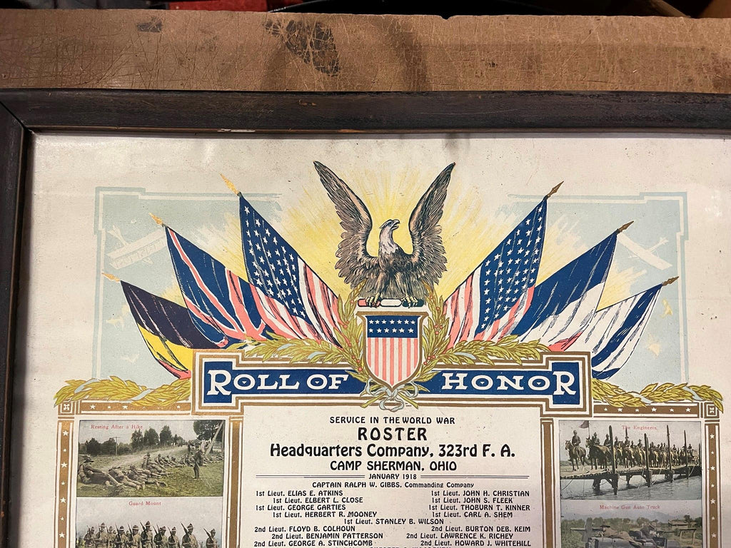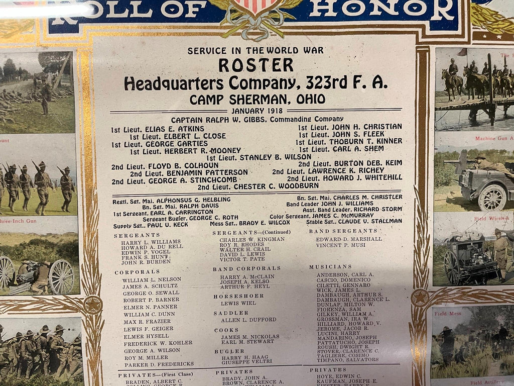 Antique Original WW1 Military Roll Of Honor Headquarters Company 323rd F.A.