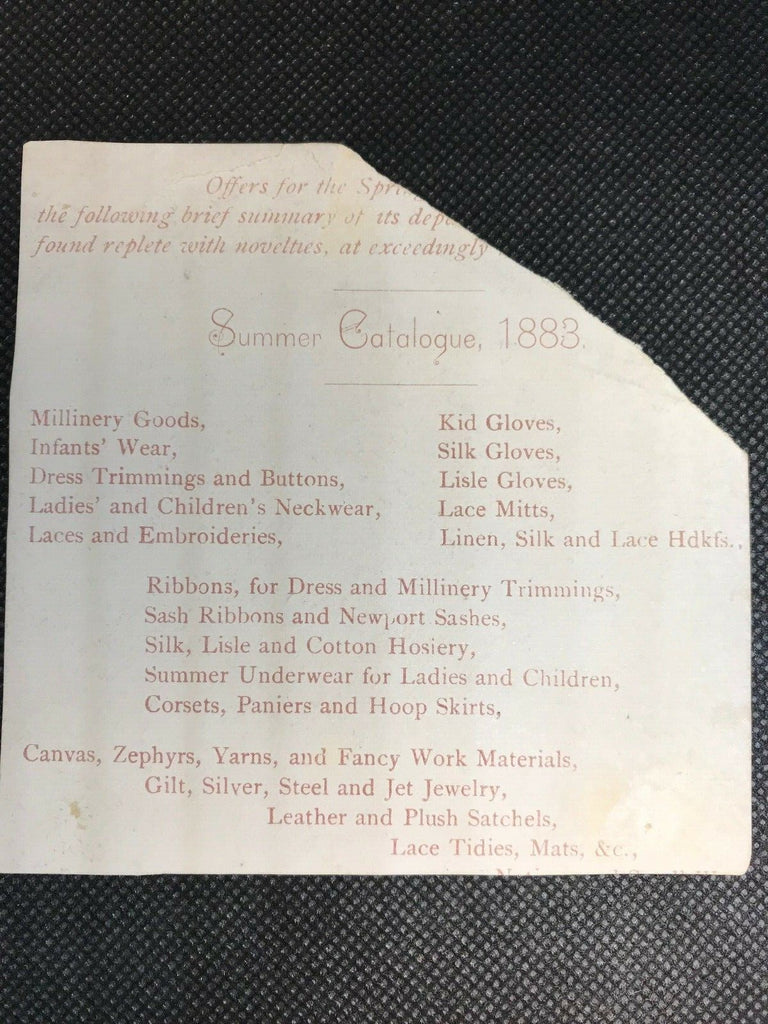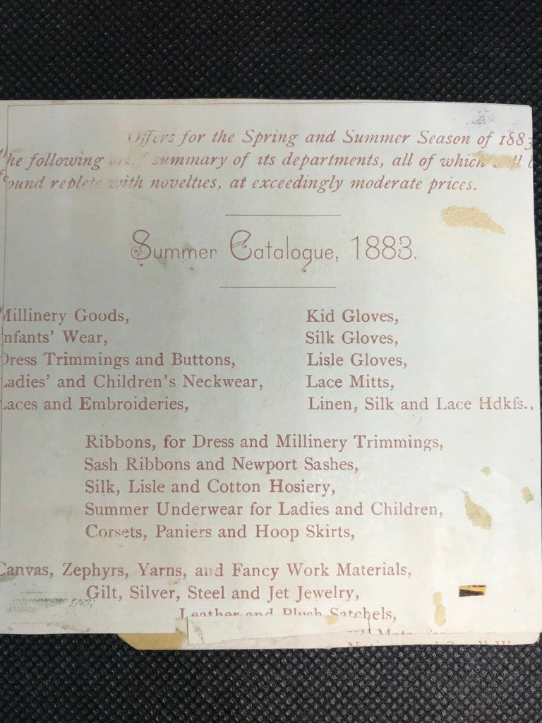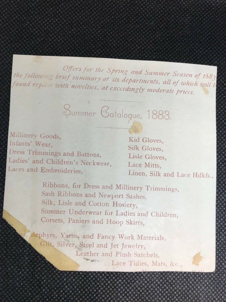 ANTIQUE SEWING GOODS SUMMER CATALOQUE 1883 TRADING CARDS