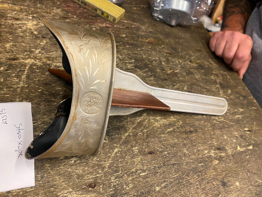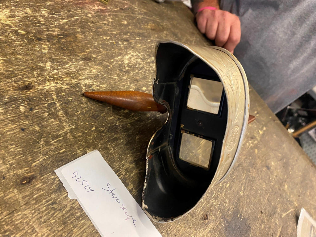 Antique Stereoview Card Viewer " The Perfeoscope" 1895 Vtg Picture Viewer Nice! Survivor! Very nice shape for the age.... nice fold up handle. Engraved
