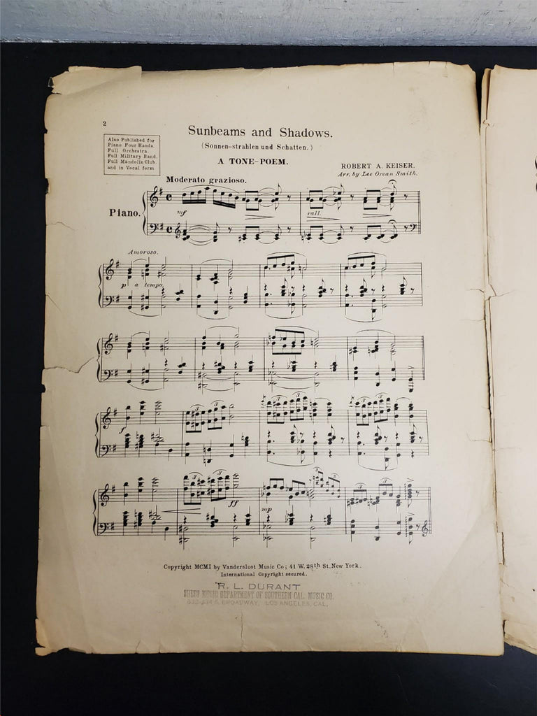 Antique 1901 Turn of The Century Sunbeams & Shadows Sheet Music Collectible Rare