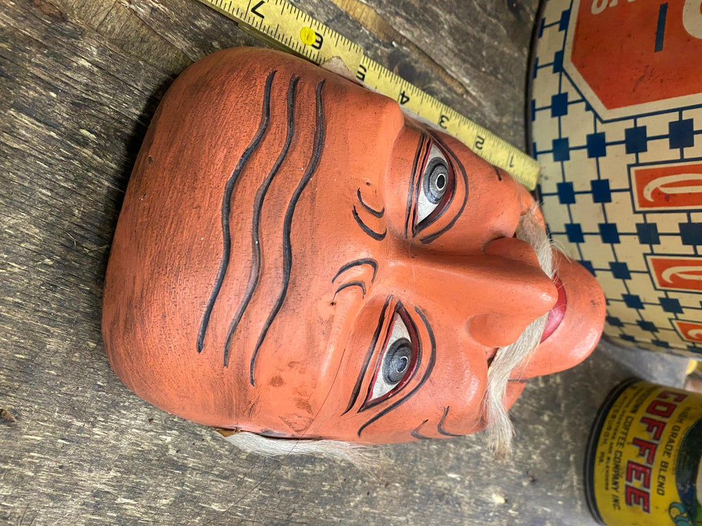 Antique Wood Noh masks traditional theater mask Play Old Man Store Keeper Vtg got a couple masks from a buddy of mine said his dad bought them decades ago had them hanging in his bar room for ever asked me to sell them for him said they were old japanese theater masks dont know much about them but pretty cool..... dont see stuff like this everyday if you know more about them let us know!