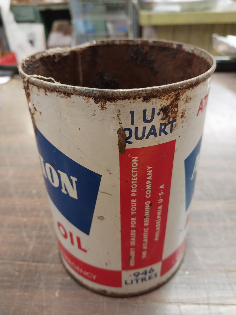 Atlantic Motor Oil Can Advertising Sign Aviation Aircraft Richfield Oil Empty