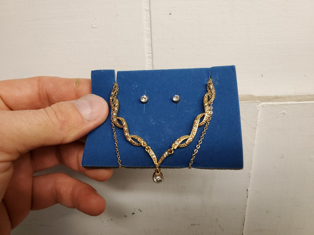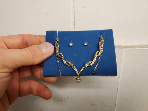 Avon Women's Set of Necklace W/Faux Diamond Pendant & Faux Diamond Earrings VF!!