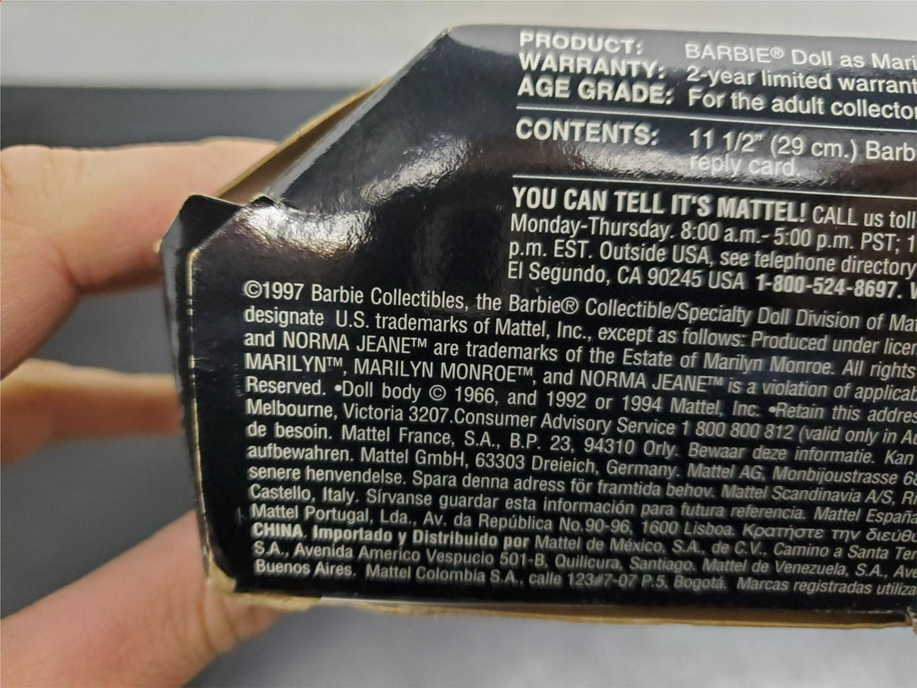 1997 Barbie as Marilyn Monroe Hollywood Legends Collection Collector Edition in original box.