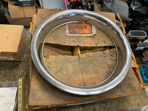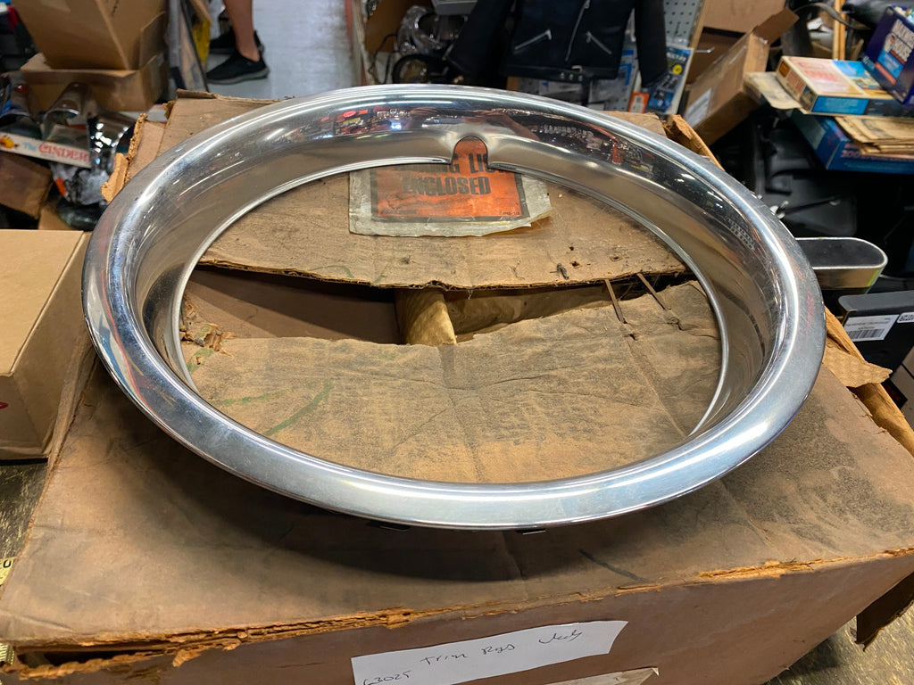Beauty Trim Rings NOS Vtg Auto Truck HOT ROD 14" Chevy Ford Dodge Rally Wheels 60's 70's still new in box!! believe their old usa made ones wasnt certain how to confirm size but too pics of measurements found them in dads garage at least 40-50 years old......