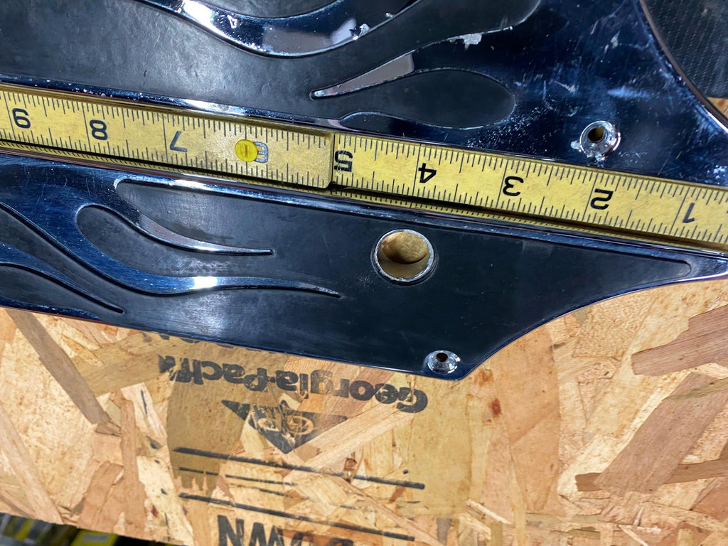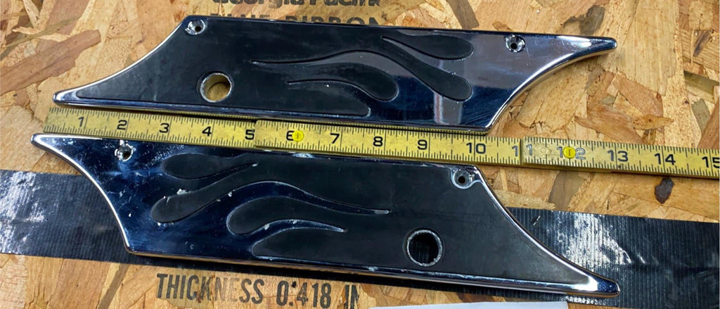 Billet Flame Saddlebag Latch Covers Harley 1993-2013 Touring FLH Glide Ultra Classic   some chrome flaking on them   maybe good ones to powdercoat....