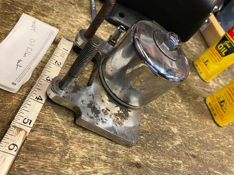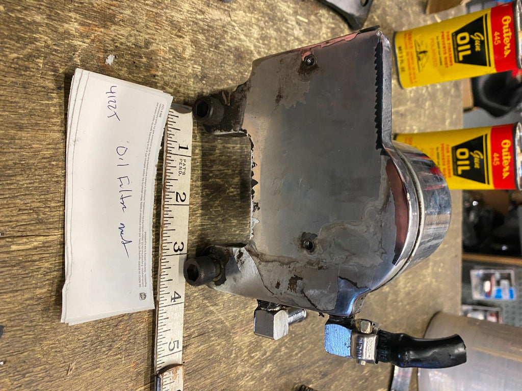 Billet Oil Filter mount Screw on Harley chopper Softail Rigid Custom Shovelhead Evo etc... mounts on front motor mount chromes peeling , would have to finish peeling it off & polish or powdercoat