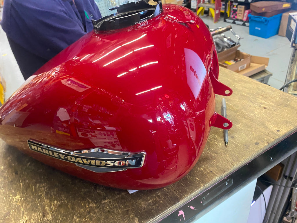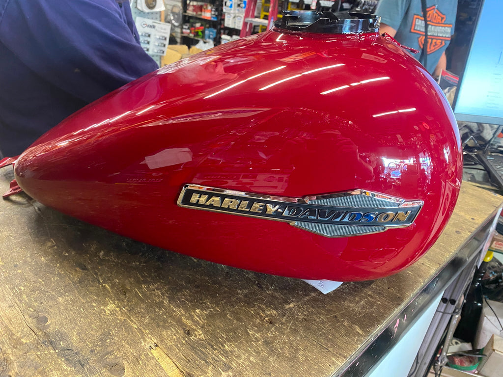 Billiard Red GAs Fuel Tank 6 Gallon Harley Touring 2021 Road Street Glide FLHX  Nice tank few smalls... (pictured)  have to look close to see some..... & a chip... with emblems... ... will sell for less with out emblems... (cant guarnatee we dont scratch paint.