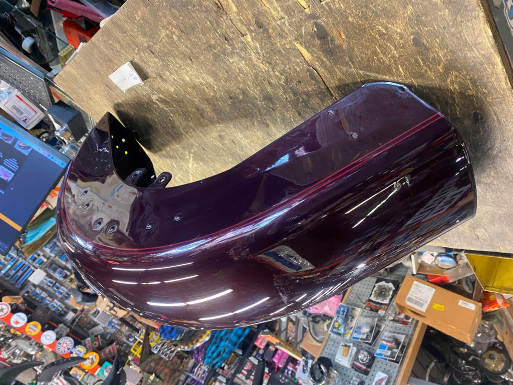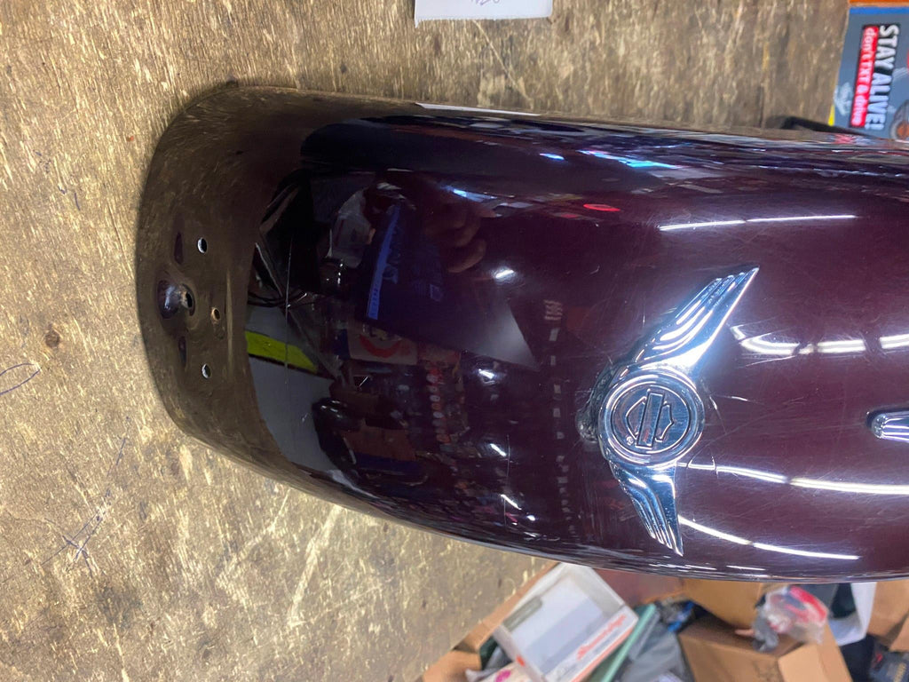 Black Cherry Front Fender Harley Heritage Softail FLSTC 2004 Trim    dent under one chrome piece    some scratches   good for a rider. or paint it.