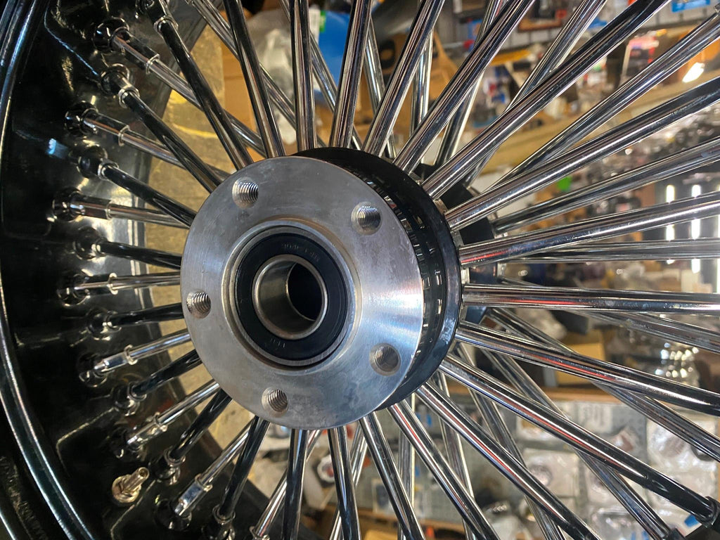 Black/Chrome 48 King Spoke 17" x 6" Rear Wheel for Custom 200 Series Frames