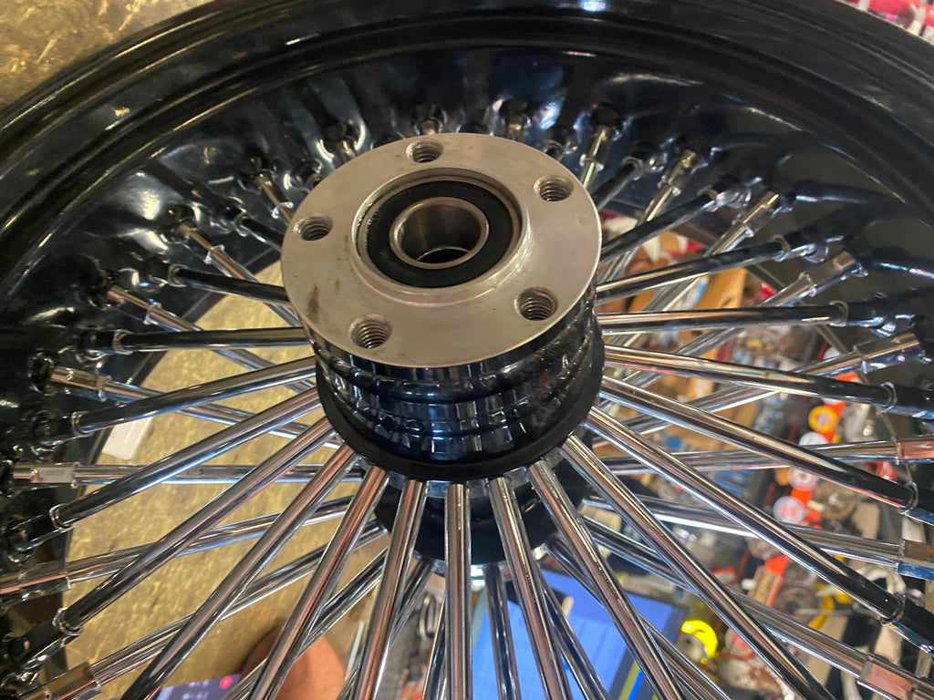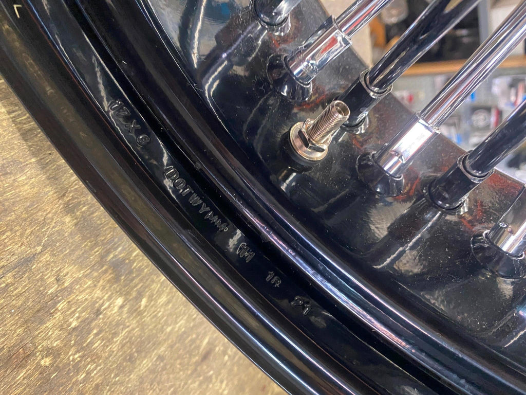 Black Chrome 48 King Fat Spoke 17X6 Rear Wheel Custom 200 Harley Softail Chopper brand new nick on edge from shipping put some touch up paint on it..... Ultima part # 37-547