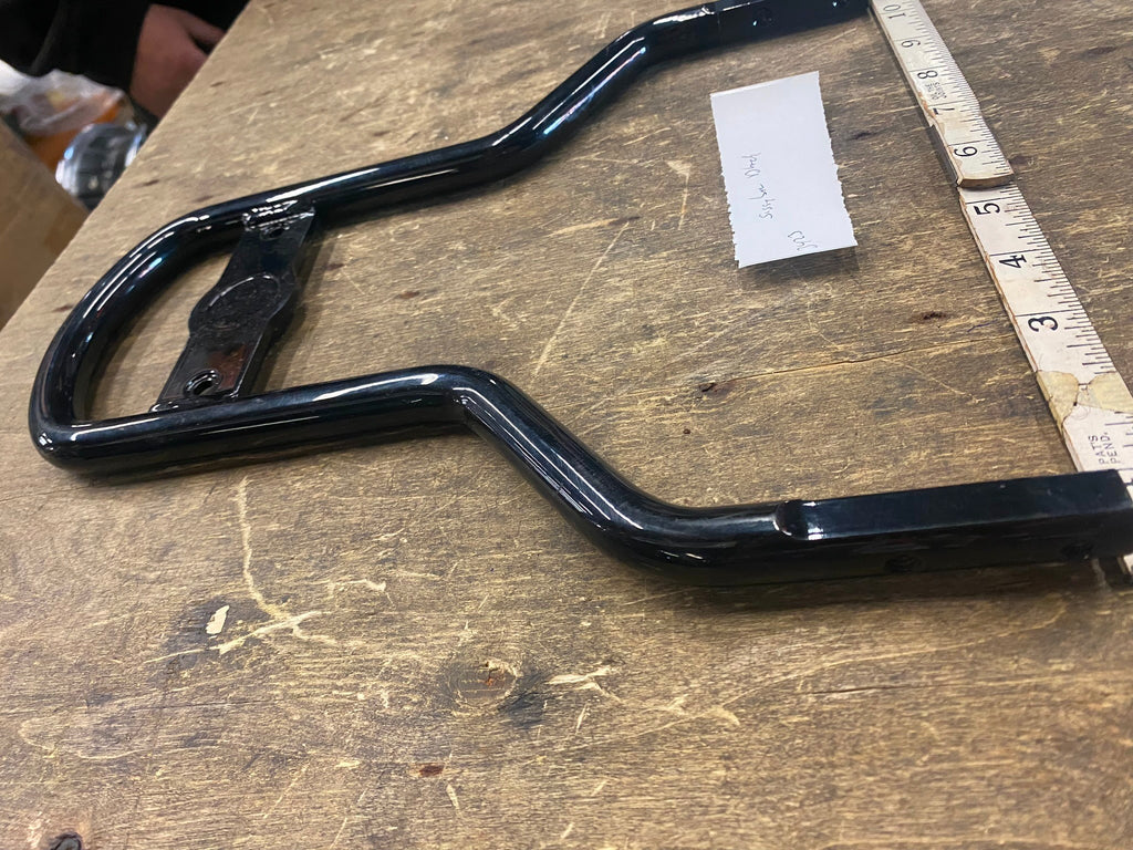 Black OEM Harley Sissybar Backrest Softail Low Heritage Fatboy Round Stock Uprigt its new was on display, didnt write down part numbers, pretty sure its for the wide tire models.... sizes in pics. pretty sure part # is 54256-10