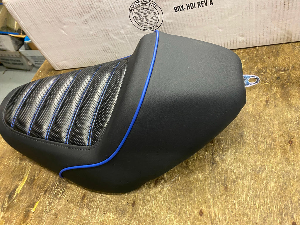 Blue Stitch Solo Seat Harley Sportster 2010^ Ribbed 883 1200 Custom 3.3 tank so906bu