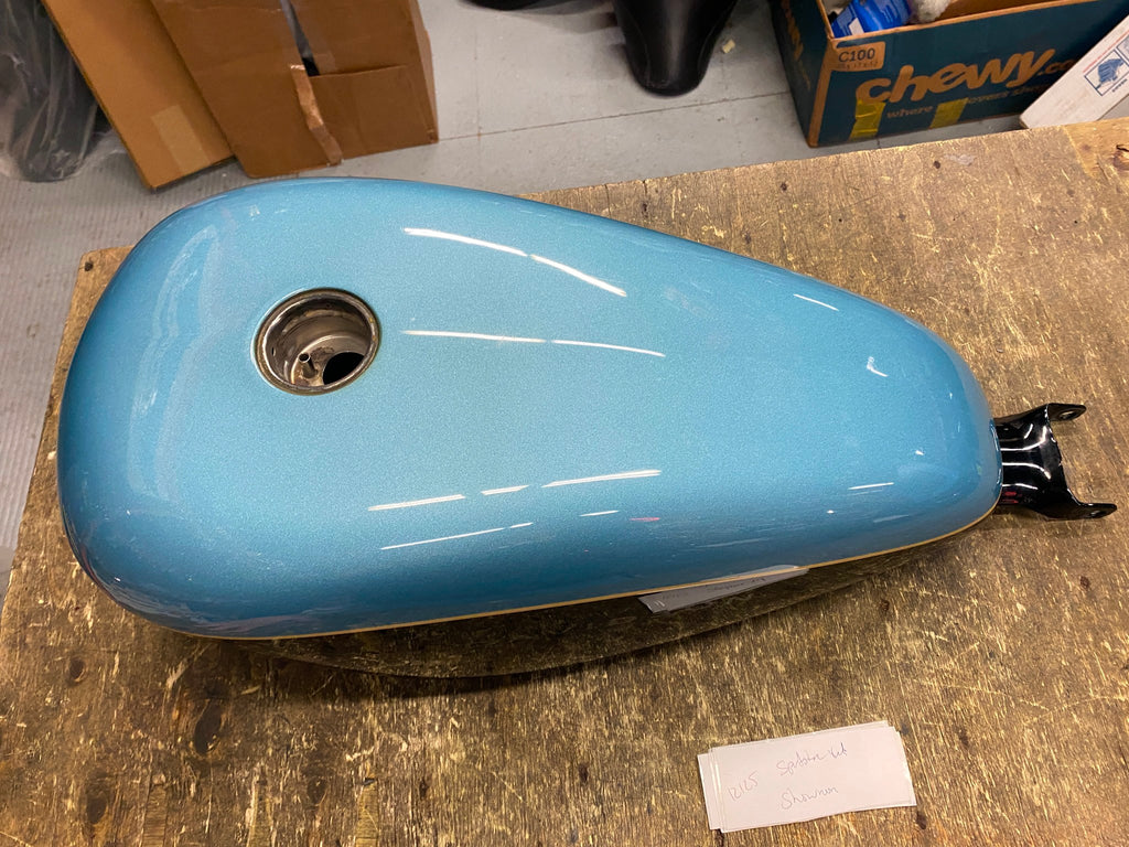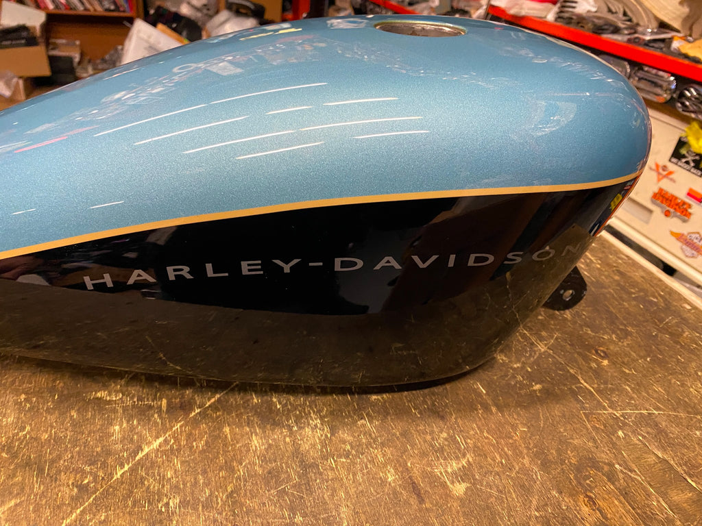 Blue Suede Pearl Black Gas Sportster Tank 2007^ 883 1200 Harley nice! some smalls bolt on....
