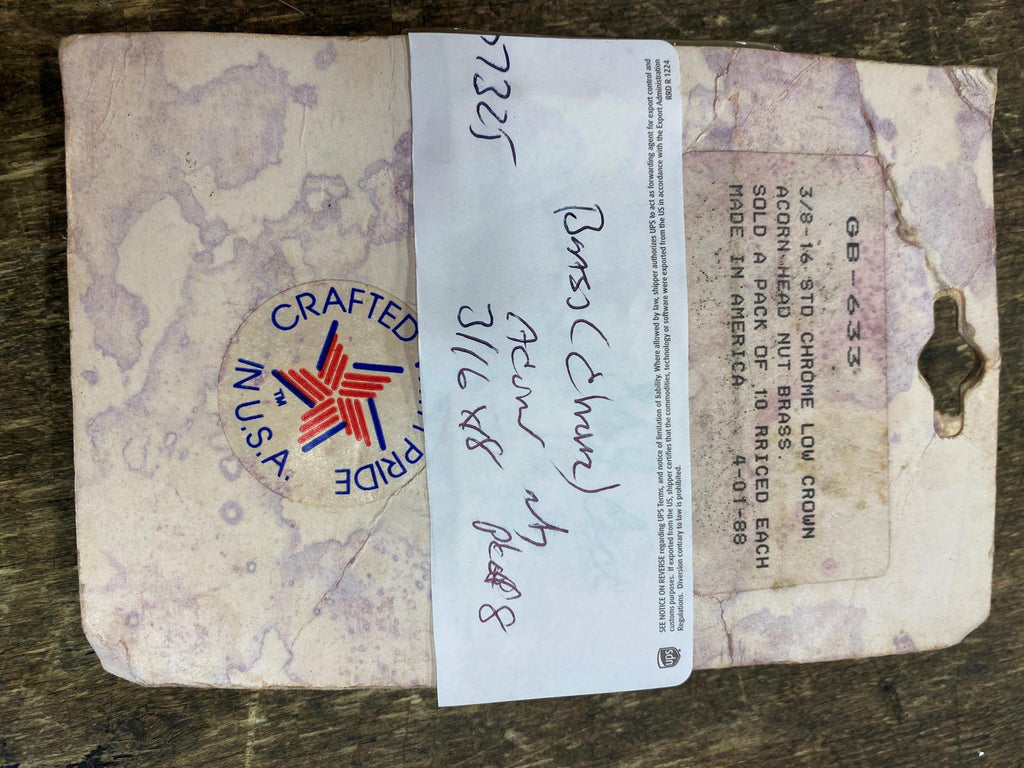 Brass Chrome Low Crown Acorn Nuts Harley Knucklehead panhead 3/8x16 Springer fork etc... pkg of 8   old gary bang acc from the day...