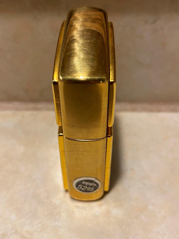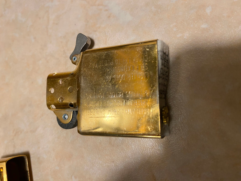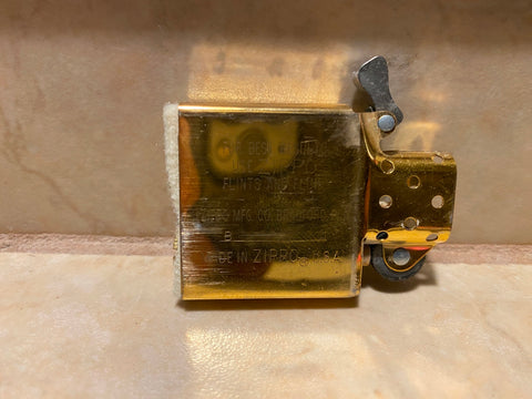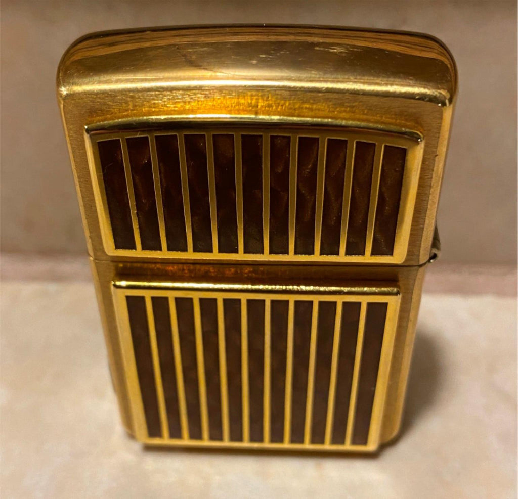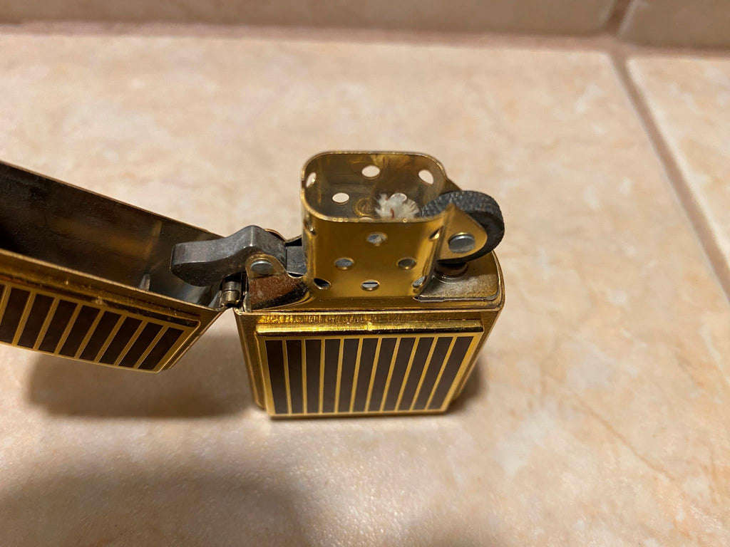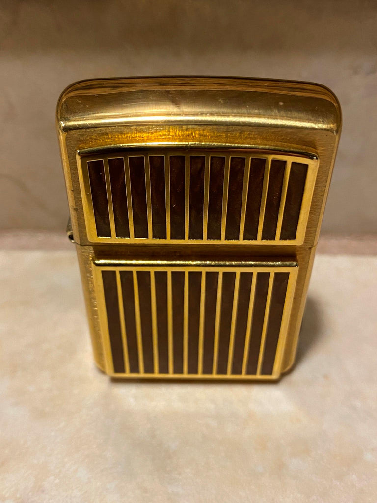 Brass Zippo Lighter Brown Marble Inlay. 1996. Unfired. Vtg Classy Collectible! They locked the flint so no one could light it..... have a bunch of zippos listed!! Still has the price tag on the side!