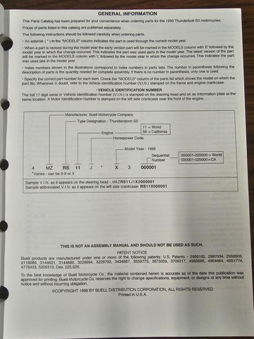 Buell American Motorcycles NOS 1999 Thunderbolt S3 Parts Catalog