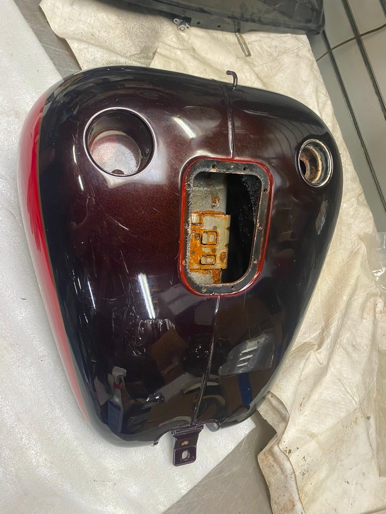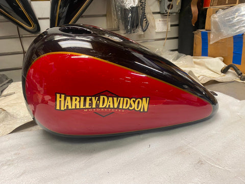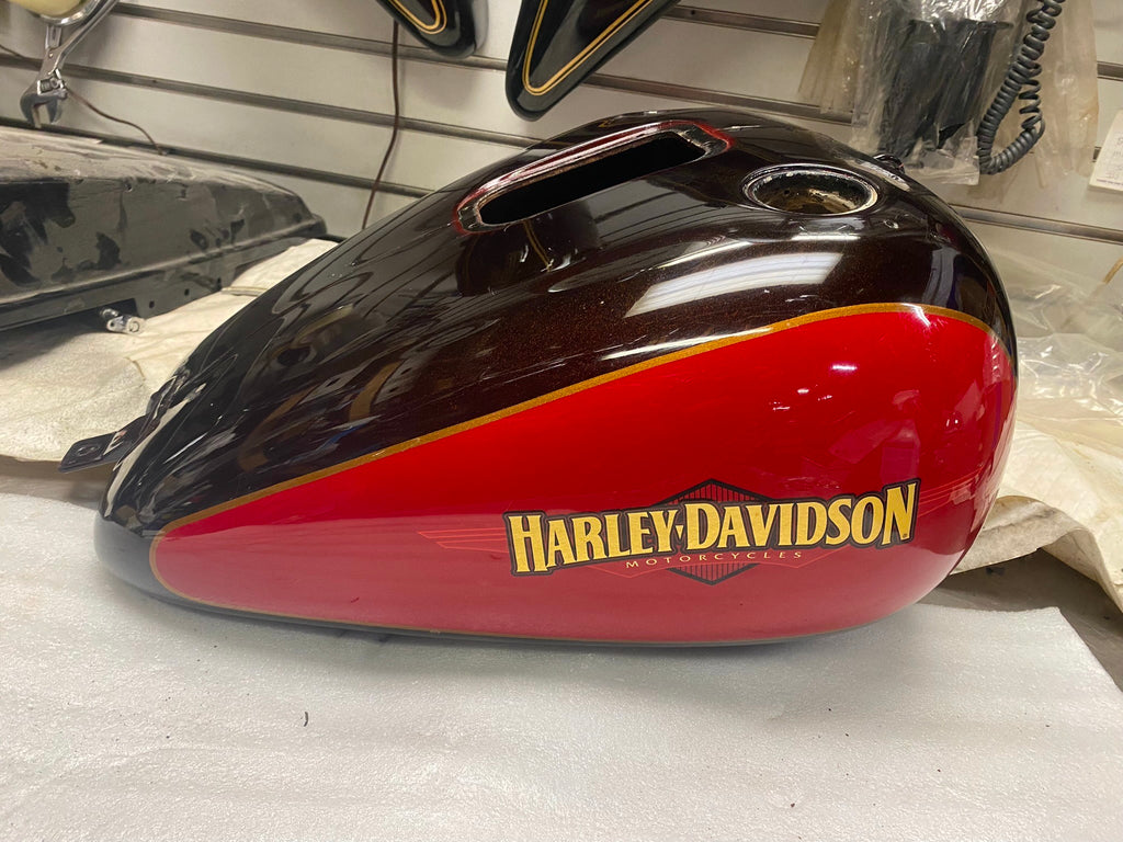Merlot Cherry Red Gas Tank Harley Heritage Softail Fatboy Custom factory Paint not sure of color names looking at decal thinking its a factory custom paint color... few small marks... inside needs cleaned out..