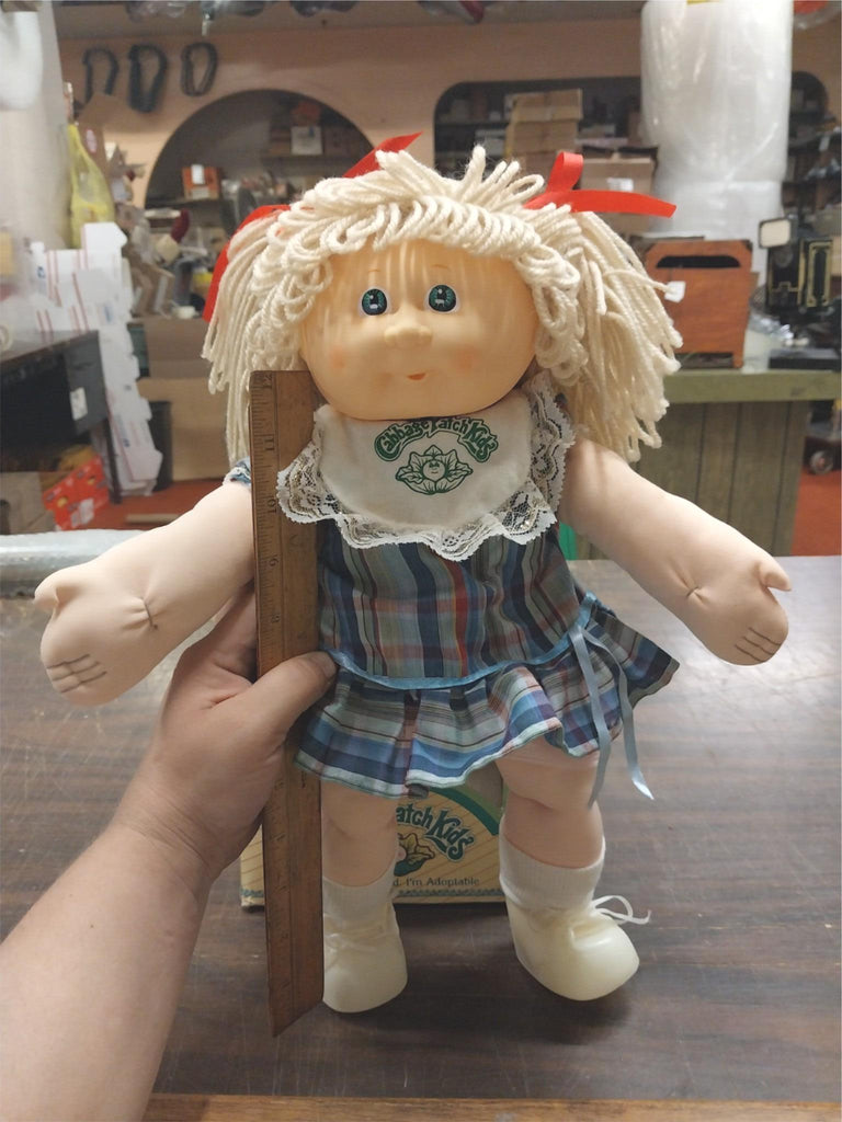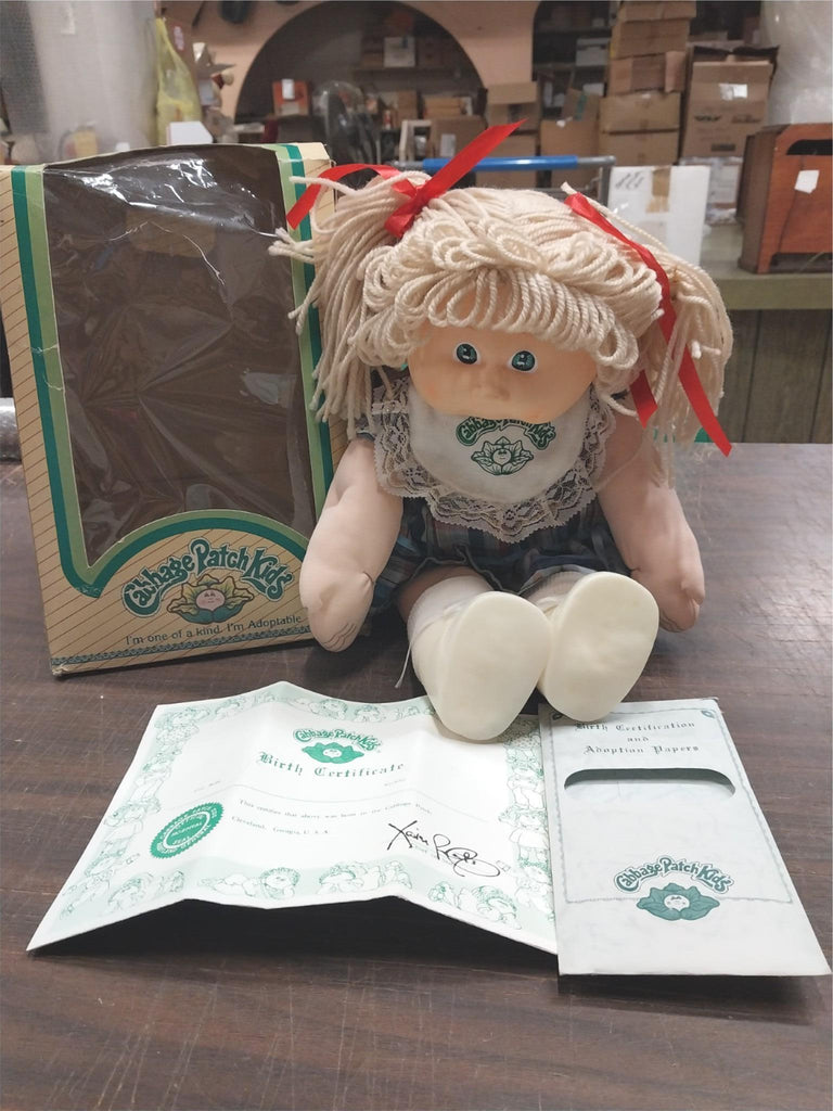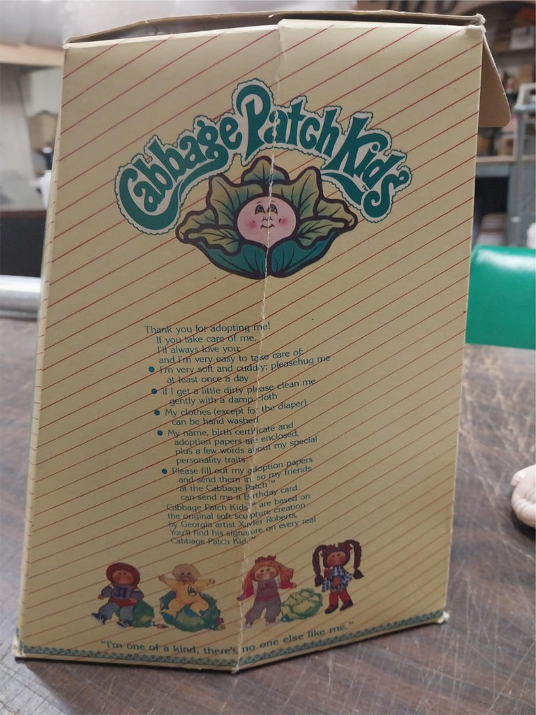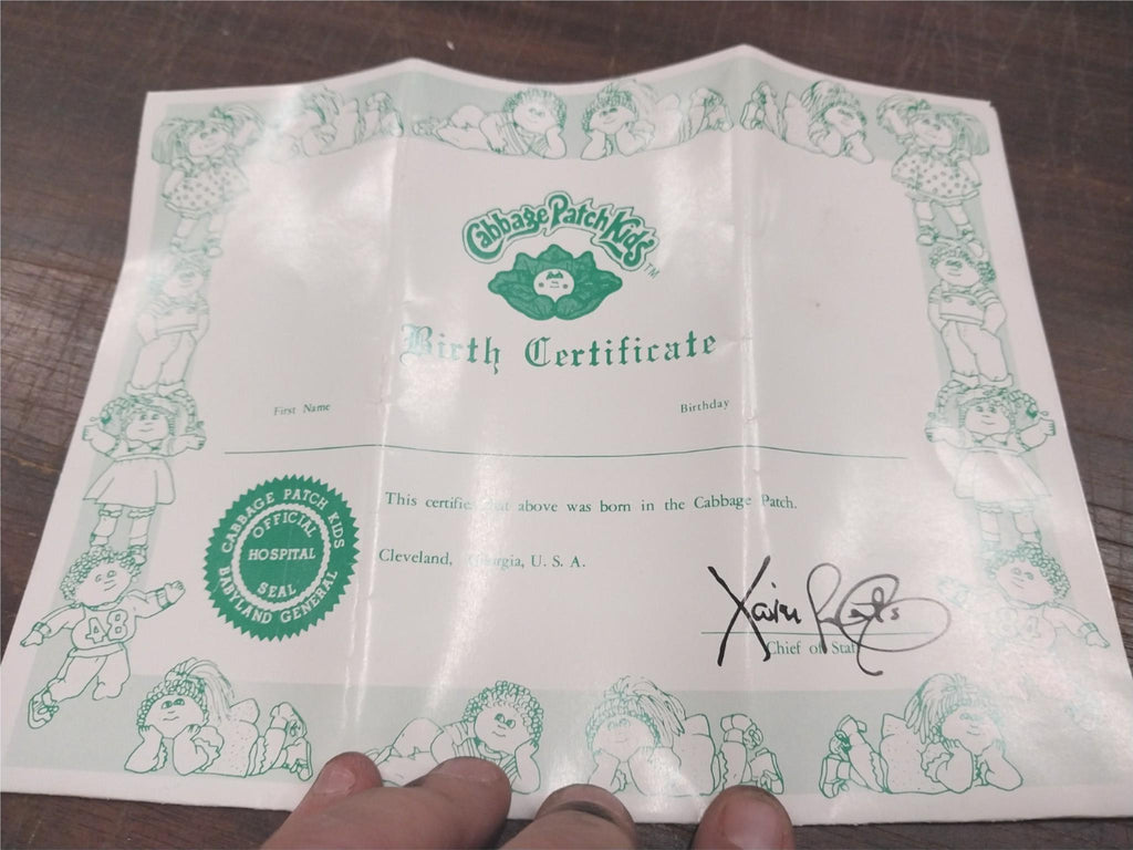 Cabbage Patch Kids Doll w/Box Adoption Papers Birth Certification Plaid Dress Blonde Hair Green Eyes