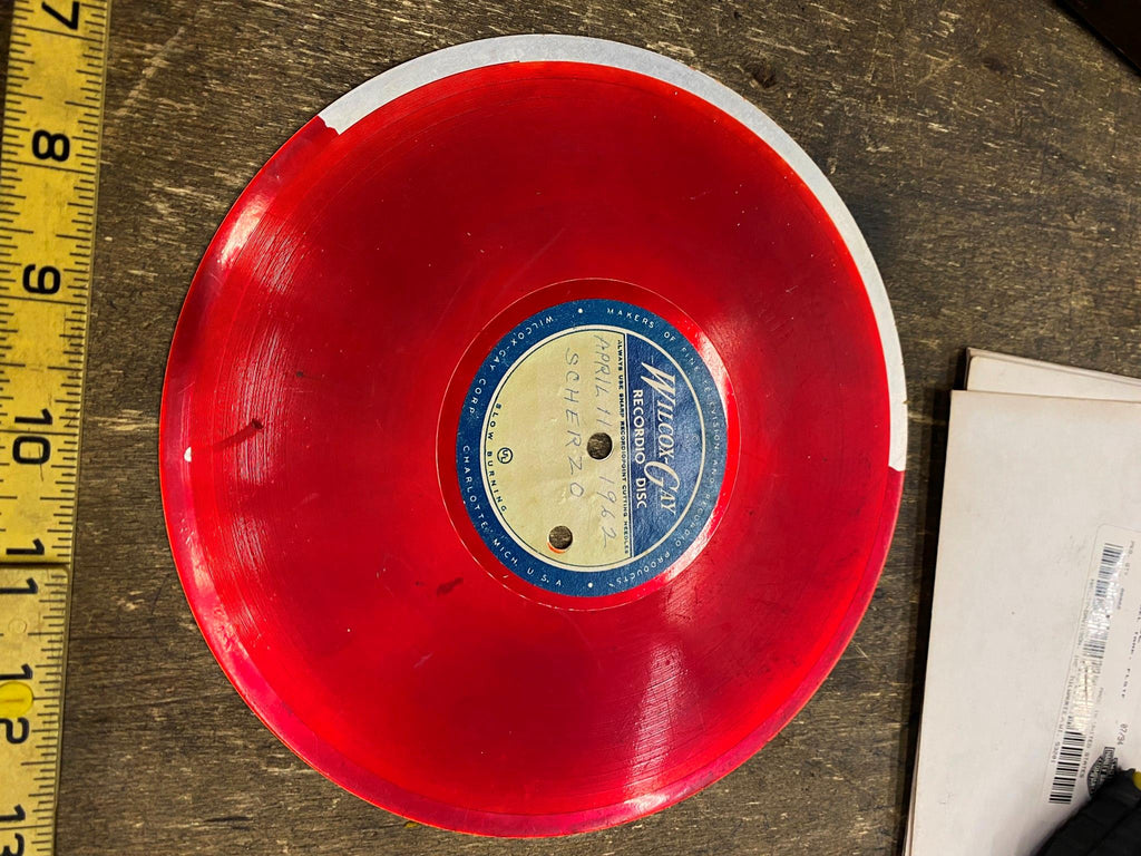 - Chinese Temple Gongs Wilcox-Gay Recordio Discs Red 10" Record Sherzo 1962 1 off just thought it was pretty neat, guess you bought blank albums & recorded on them like a cassette didnt play it.. maybe a one off.....great wall hanger!!