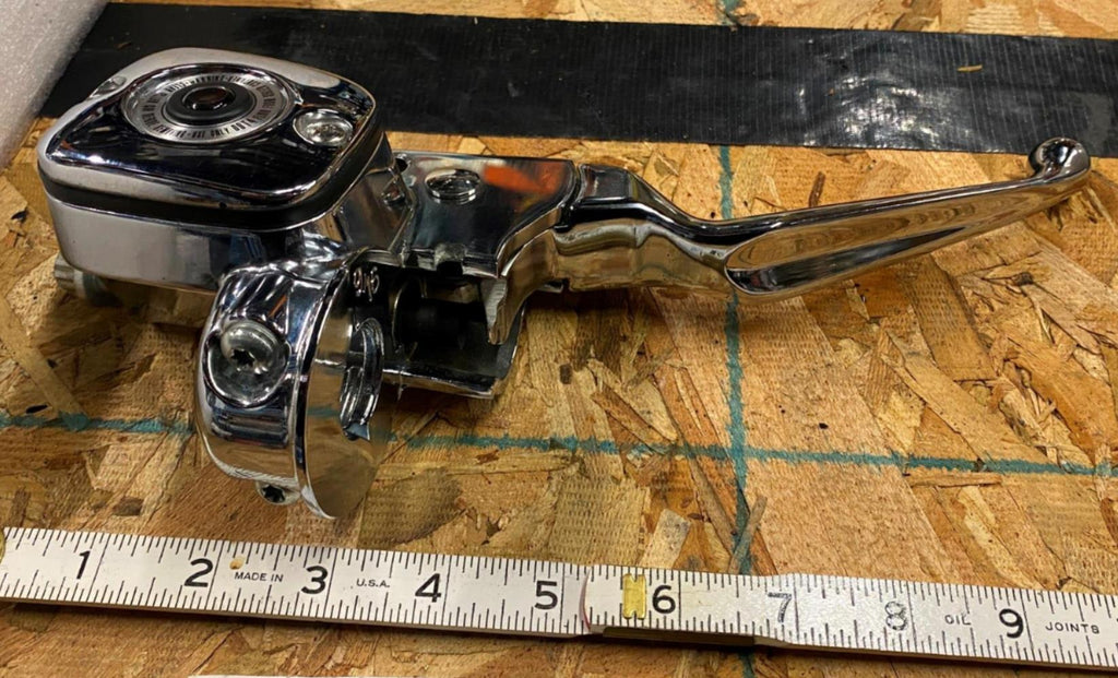 Chrome Front Brake Master Cylinder Single disc Harley OEM 1996^ Softail Dyna Sportster    was on display