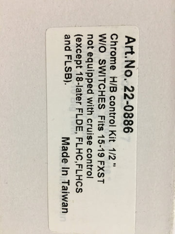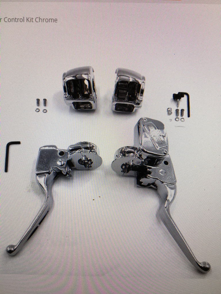 Handlebar control kit features a chrome finish and has a 1/2" bore master cylinder and is for single disc applications.