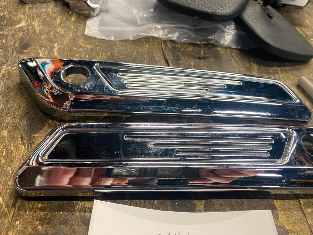 Chrome Saddlebag Latch Covers Hinge Harley Touring FLH Glide 2014^ Custom milled selling as pictured.