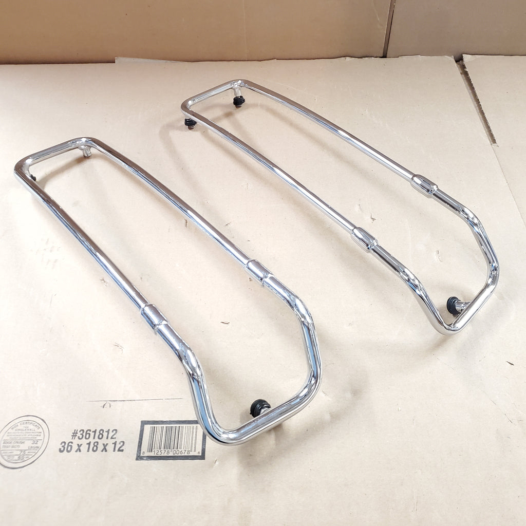 Chrome Trim Rails Harley Saddlebags FLH Touring Ultra Classic Glide 1980-2013. Nice shape, one bolt broke off in mount...