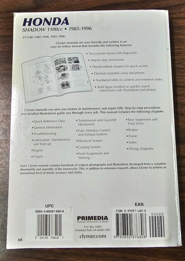 Clymer Maintenance/Service Repair Manual 1985-1996 Honda Shadow 1100cc