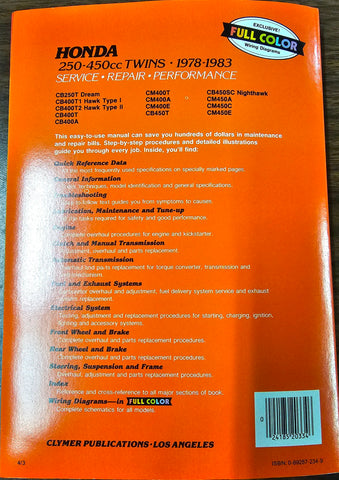 Clymer Maintenance & Service Repair Shop Manual Honda 250-450cc Twins 1978-1983