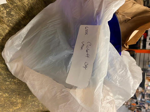 Cobalt Blue Antique Vtg Vase 8" Tall Decor Glass 6" across Collectible Flowers! came from a doctors estate, Gf loved it but likes to change things around