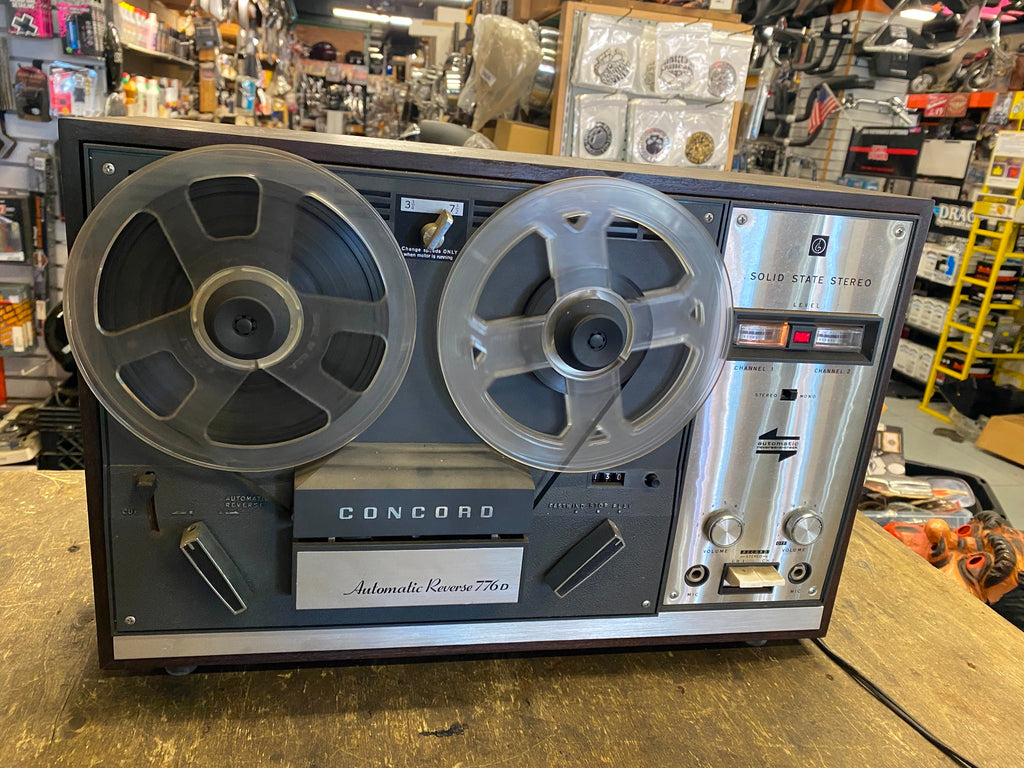 Concord auto reverse 776d reel to reel Stereo Vtg Electronics Tape Deck Player! Turns on seems to run fine, the one tape will hang up a little then catch up, plugged a speaker into it but dont know if theres anything on the tape.....T