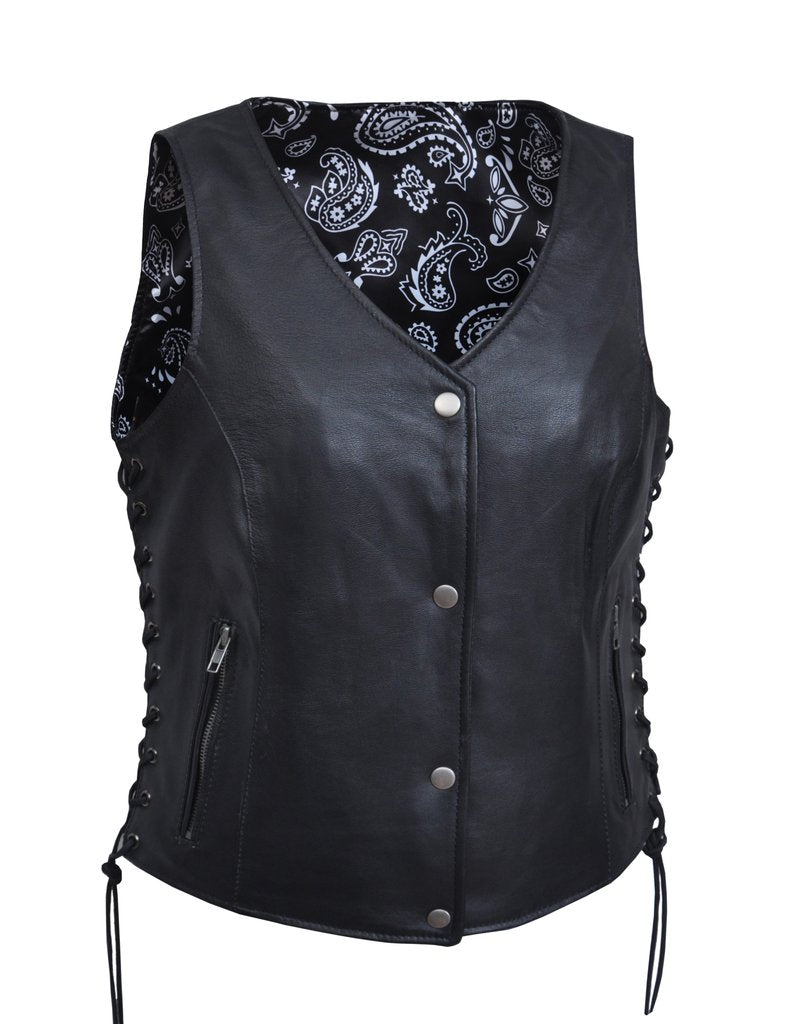 COWHIDE SKIN Ladies Leather Vest with Black Liner