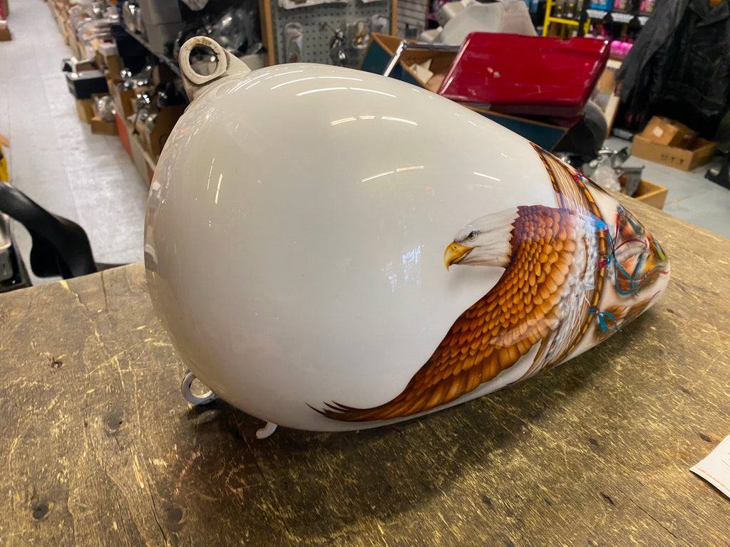 Custom Airbrush Eagle Gas tank Fatbob Wall Hanger Harley Softail Display sign  factory harley 5 gallon fatbob   petcock bung is bent   may still work, I just liked the paint!  figured its a great wall hanger for the man cave or garage!!