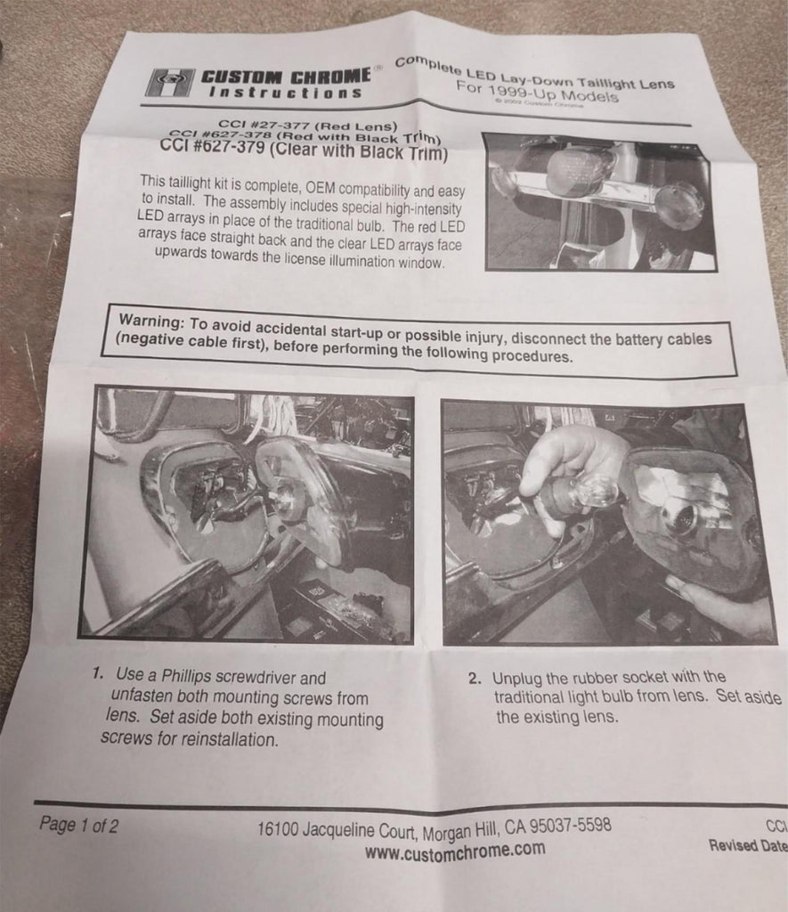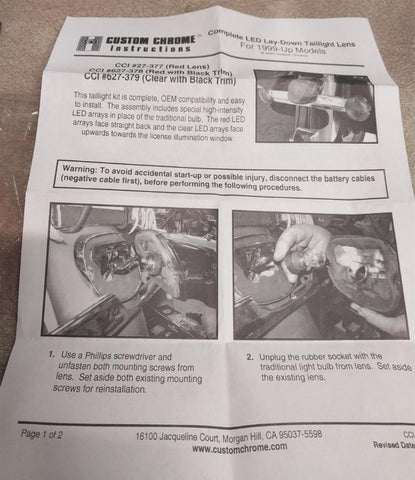 Custom Chrome 27377 Red Laydown Style Taillight LED 1999^ Models Harley
