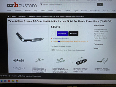 D592hc Vance Hines Front Heat Shield Power Duals Exhaust Harley Touring FLH gLIDE Vance hines part #" D592hc-r