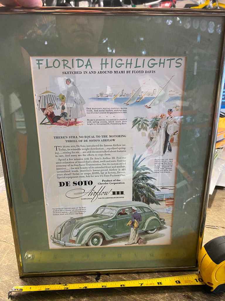 Desoto Airflow poster picture Metal framed Vtg Advertising 10x13 Chrysler Mopar really nice meal frame!.... Great Piece for the office, man cave garage!