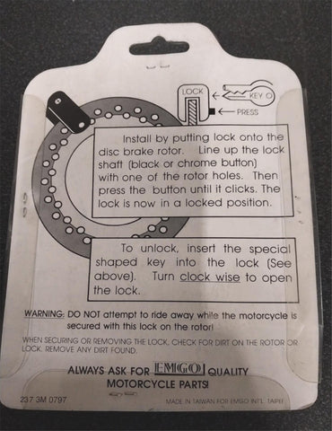 Disc Brake Lock Rotor Red w/Bracket Security Key 81-95415 Motorcycle