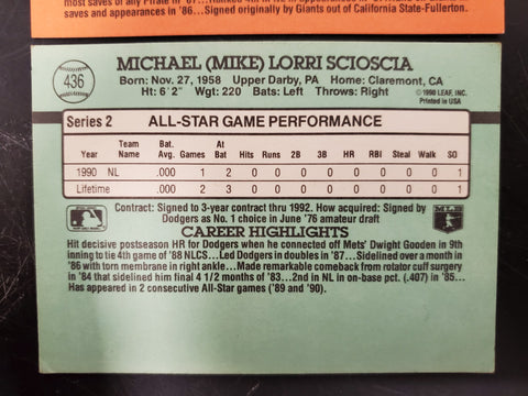 Donruss 90 Jeff Robinson & 91 Mike Scioscia Baseball Trading Cards Error No Perd