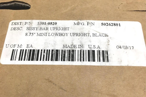 Drag Specialties Black Steel Sissy Bar Upright 8.75" Mini Lowboy Dyna Softail